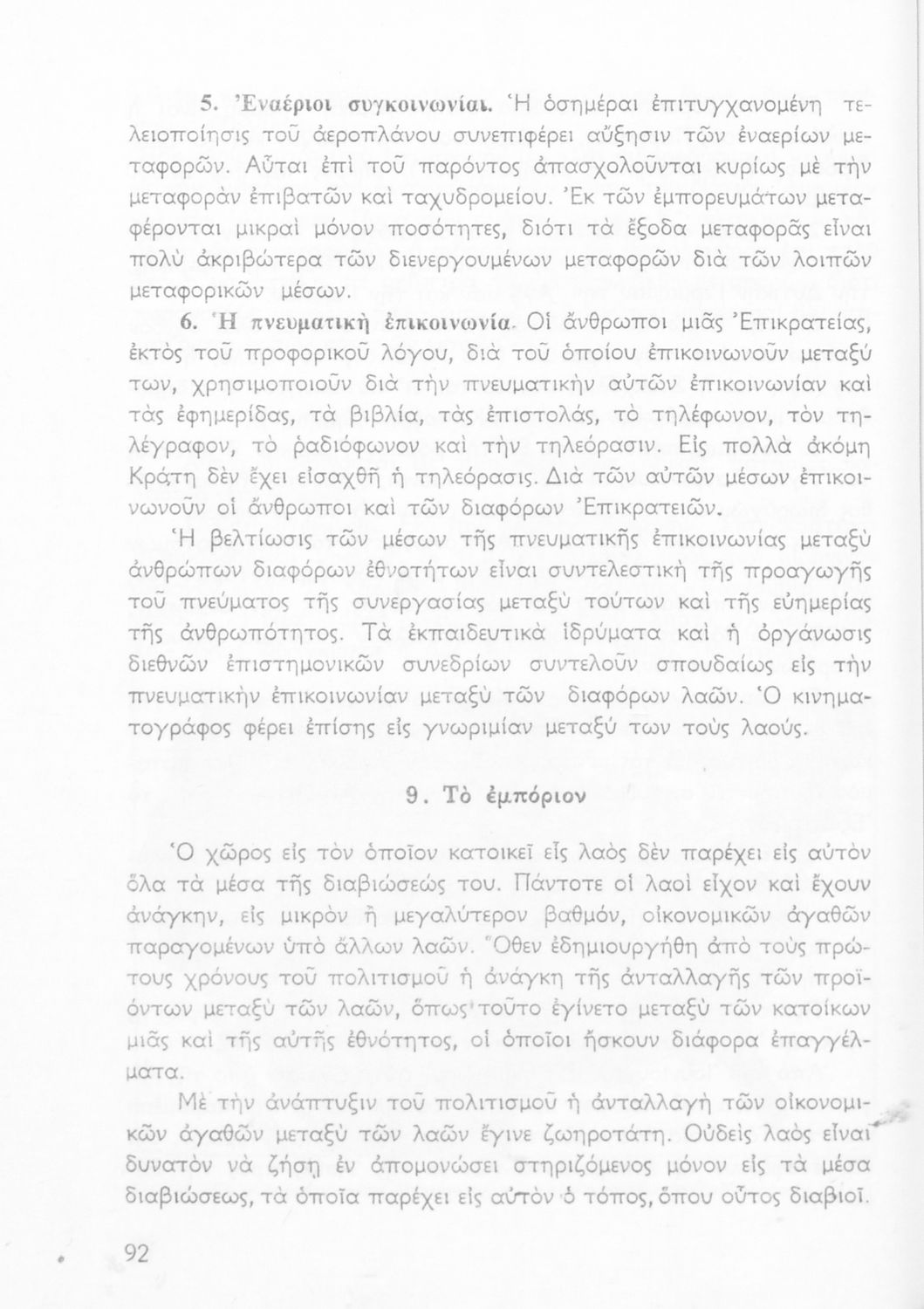 Σχολικό εγχειρίδιο Γεωγραφίας Ε' Γυμνασίου που περιλαμβάνει εισαγωγή στην ανθρωπογεωγραφία και εστιάζει στην οικονομική παραγωγή της Ελλάδας και τη σχέση της με την ΕΟΚ. Περιέχει ειδική αναφορά στα "οικονομικά