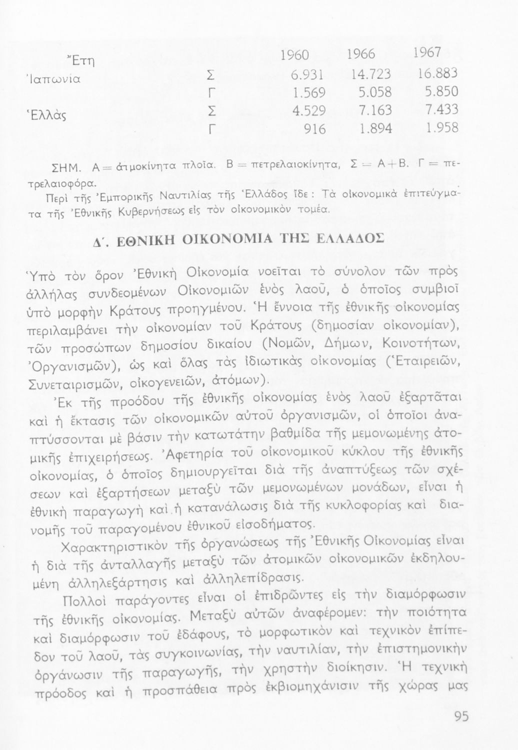 Παρουσίαση περιεχομένου: Σχολικό εγχειρίδιο Γεωγραφίας Ε' Γυμνασίου που περιλαμβάνει εισαγωγή στην ανθρωπογεωγραφία και εστιάζει στην οικονομική παραγωγή της Ελλάδας και τη σχέση της με την ΕΟΚ. Περιέχει ειδική αναφορά στα "οικονομικά και κοινωνικά επιτεύγματα της Εθνικής Κυβερνήσεως". Φέρει το σύμβολο της δικτατορίας.