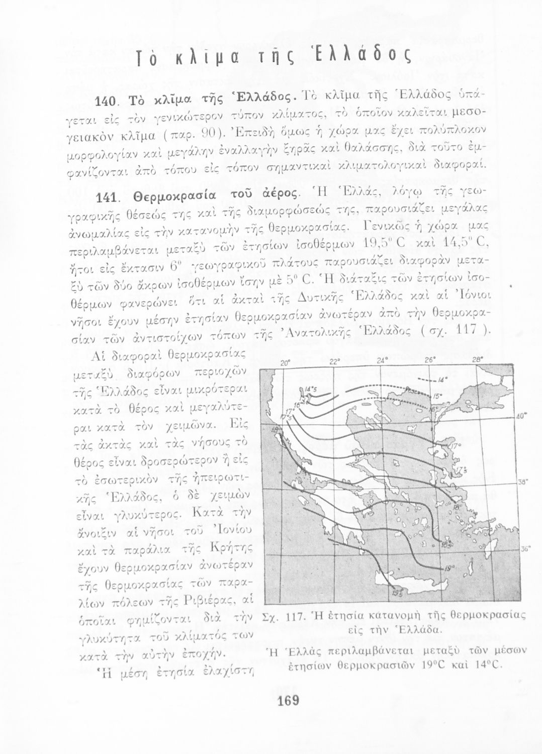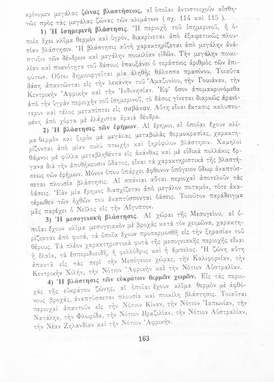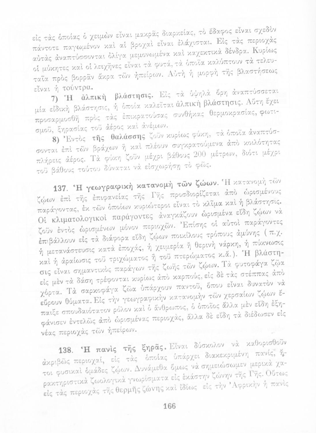 Σχολικό εγχειρίδιο Γεωγραφίας Δ΄ Γυμνασίου που περιλαμβάνει στοιχεία ιστορικής γεωλογίας, και φυσικής και μαθηματικής γεωγραφίας και εστιάζει στη βιογεωγραφία και του κλίμα της Ελλάδας.