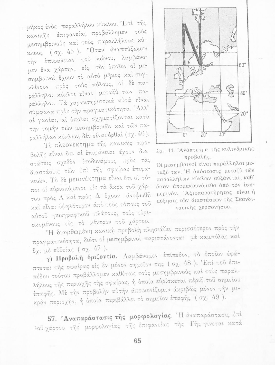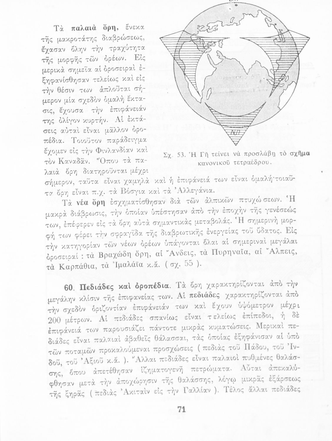 Σχολικό εγχειρίδιο Γεωγραφίας Δ' Γυμνασίου που περιλαμβάνει στοιχεία φυσικής και μαθηματικής γεωγραφίας και γεωλογίας.