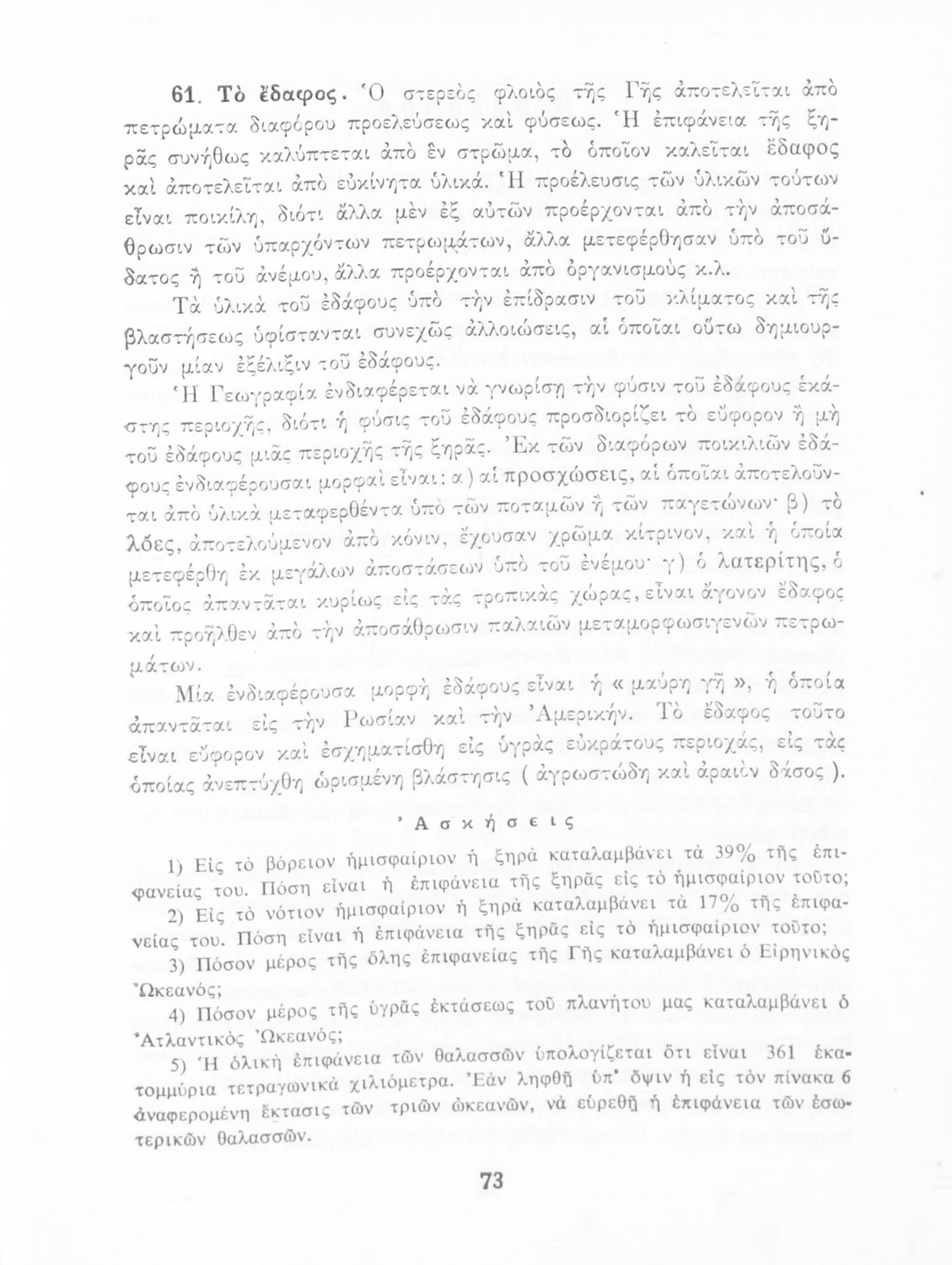 Σχολικό εγχειρίδιο Γεωγραφίας Δ' Γυμνασίου που περιλαμβάνει στοιχεία φυσικής και μαθηματικής γεωγραφίας και εξετάζει τη Γη από γεωμορφολογική και γεωλογική άποψη.
