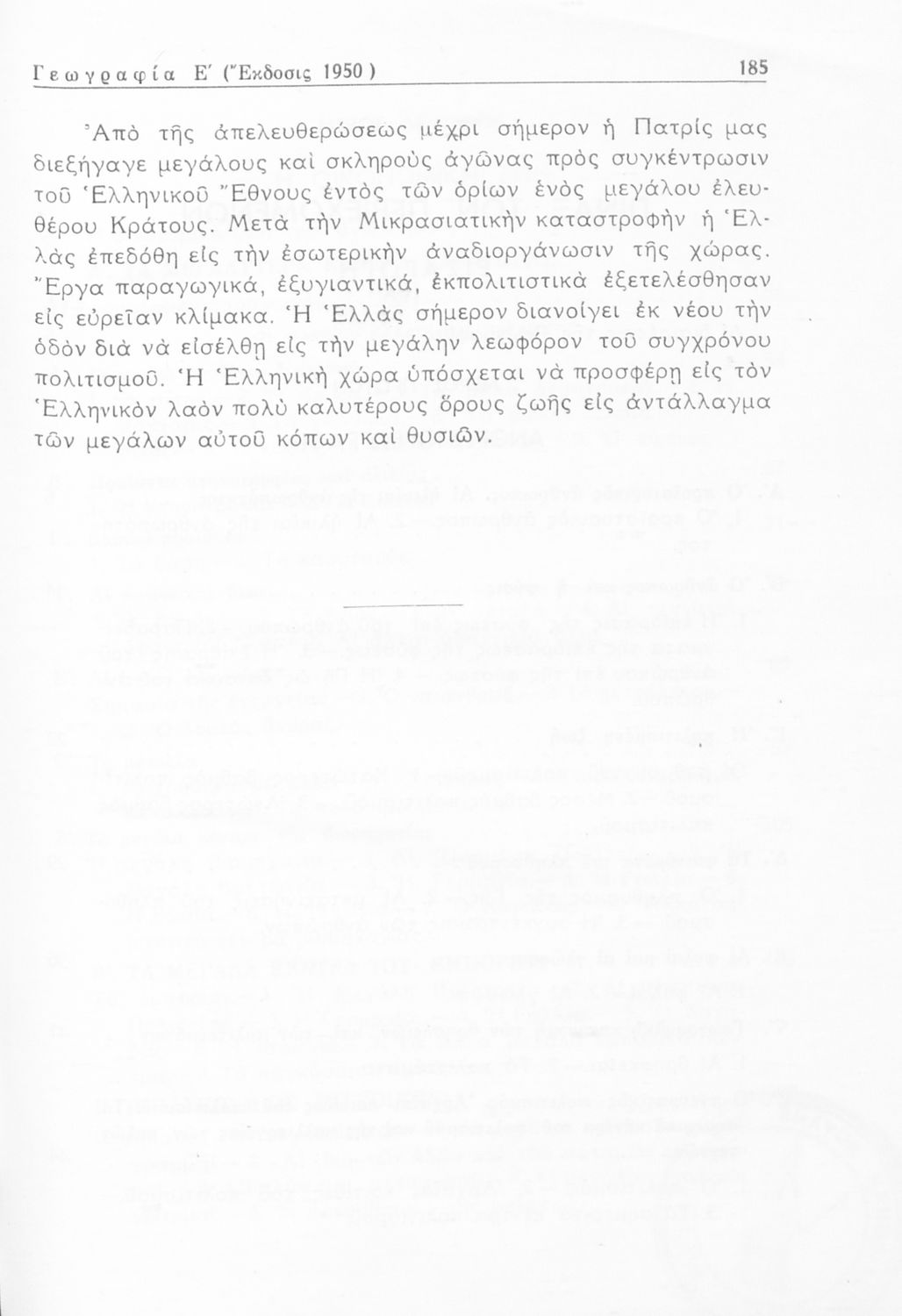 Βαθμίδα εκπαίδευσης: Δευτεροβάθμια Τάξη: Ε' Γυμνασίου Μάθημα: Γεωγραφία Γλώσσα: Απλή καθαρεύουσα Παρουσίαση περιεχομένου: Σχολικό εγχειρίδιο Γεωγραφίας Ε' Εξαταξίου Γυμνασίου που περιλαμβάνει εισαγωγή στην ανθρωπογεωγραφία και εστιάζει στην παγκόσμια οικονομική ζωή και τις μεγάλες οικονομικές δυνάμεις. Περιέχει και γεωγραφική και οικονομική επισκόπηση της Ελλάδας καθώς και μελέτη της πολιτικής και κοινωνικής ζωής της. |