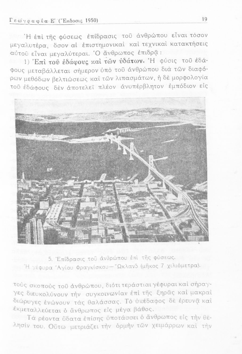 Σχολικό εγχειρίδιο Γεωγραφίας Ε΄ Εξαταξίου Γυμνασίου που εστιάζει την ανθρωπογεωγραφία, με έμφαση σε θέματα μετανάστευσης και πληθυσμιακής αύξησης, και την οικονομική γεωγραφία με έμφαση σε θέματα γεωργικής, ...