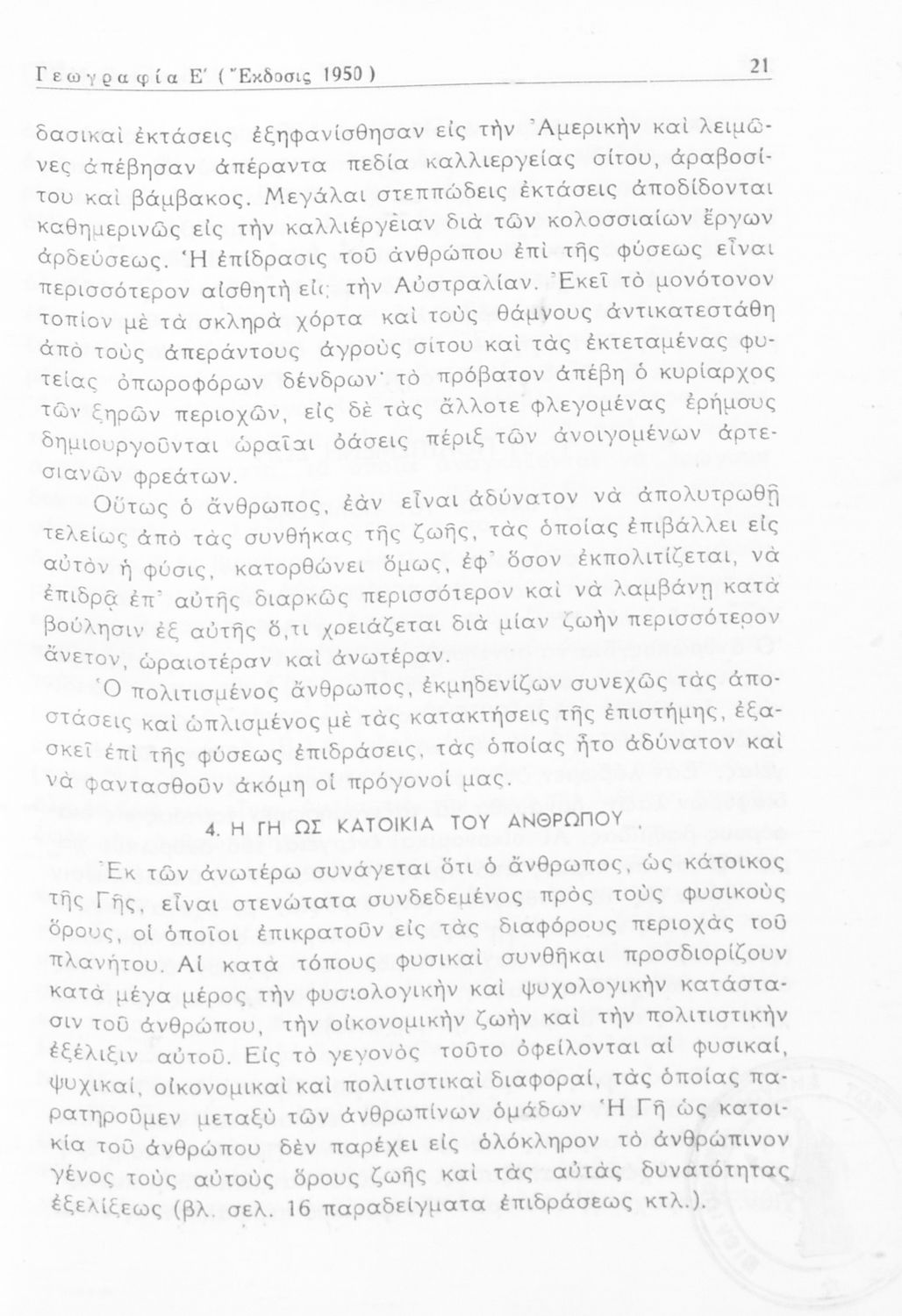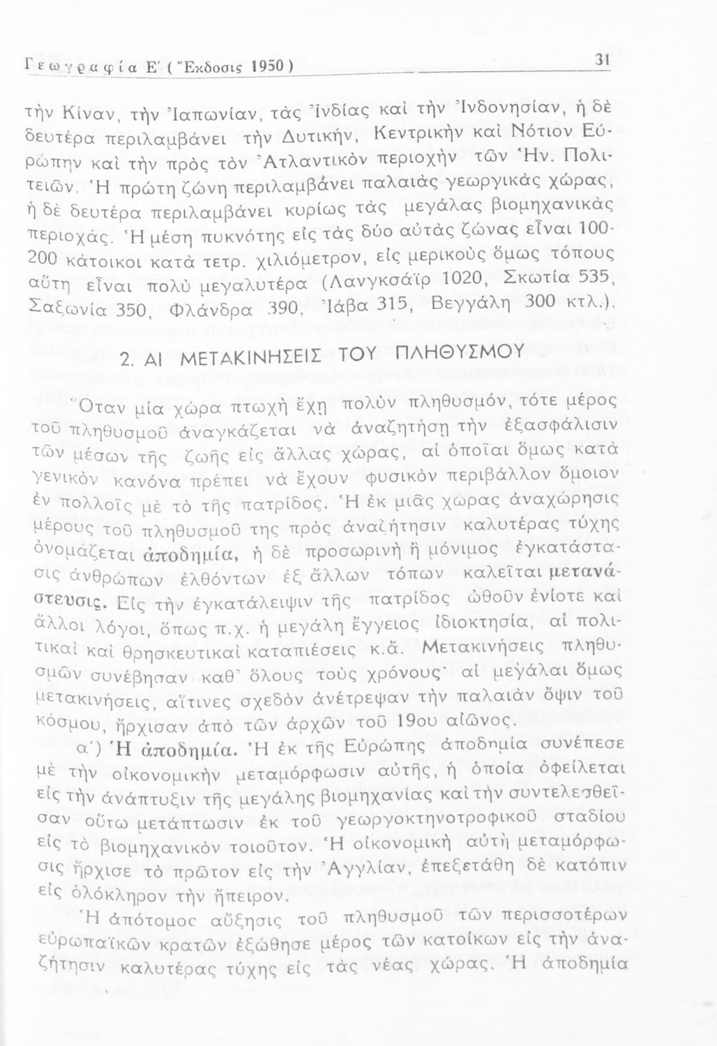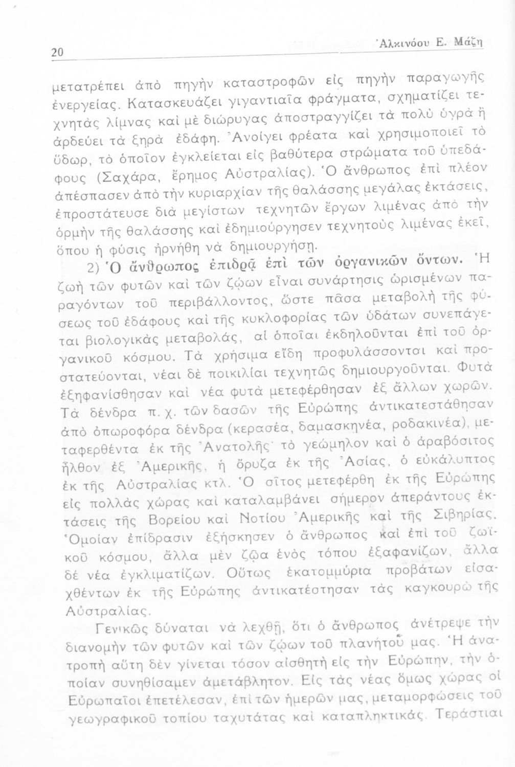 Σχολικό εγχειρίδιο Γεωγραφίας Ε' Εξαταξίου Γυμνασίου που περιλαμβάνει εισαγωγή στην ανθρωπογεωγραφία και εστιάζει στην παγκόσμια οικονομική ζωή και τις μεγάλες οικονομικές δυνάμεις. Περιέχει και γεωγραφική και οικονομική επισκόπηση της Ελλάδας καθώς και μελέτη της πολιτικής και κοινωνικής ζωής της.