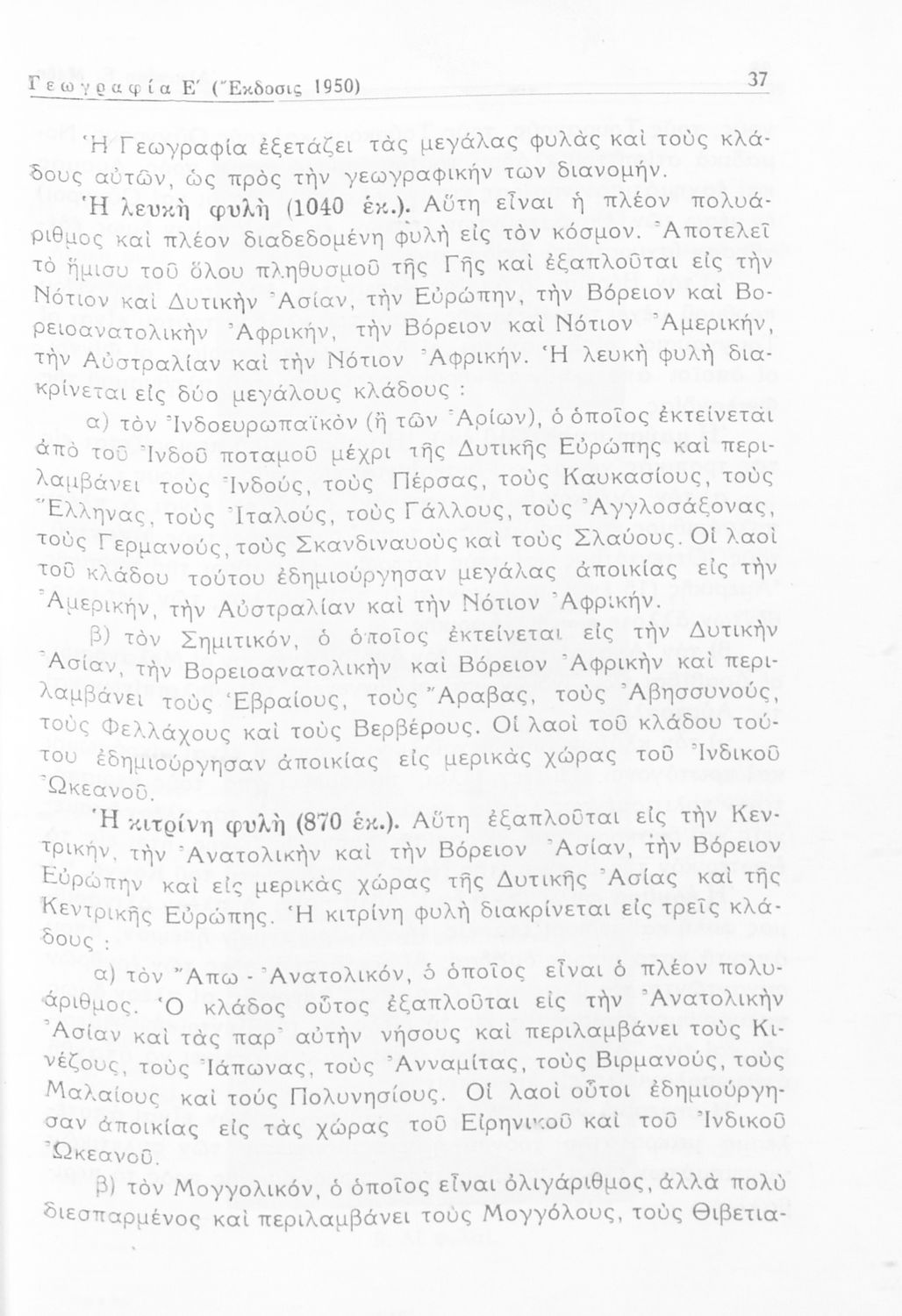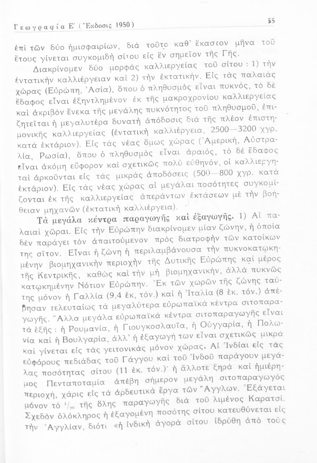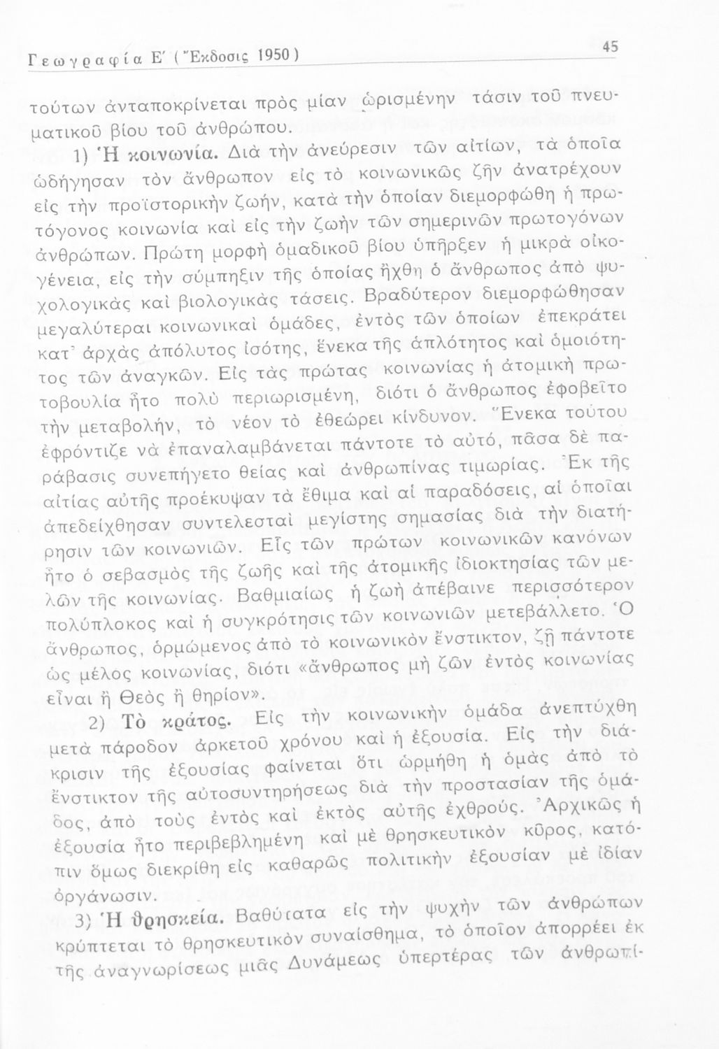 Σχολικό εγχειρίδιο Γεωγραφίας Ε' Εξαταξίου Γυμνασίου που περιλαμβάνει εισαγωγή στην ανθρωπογεωγραφία και εστιάζει στην παγκόσμια οικονομική ζωή και τις μεγάλες οικονομικές δυνάμεις. Περιέχει και γεωγραφική και οικονομική επισκόπηση της Ελλάδας καθώς και μελέτη της πολιτικής και κοινωνικής ζωής της.