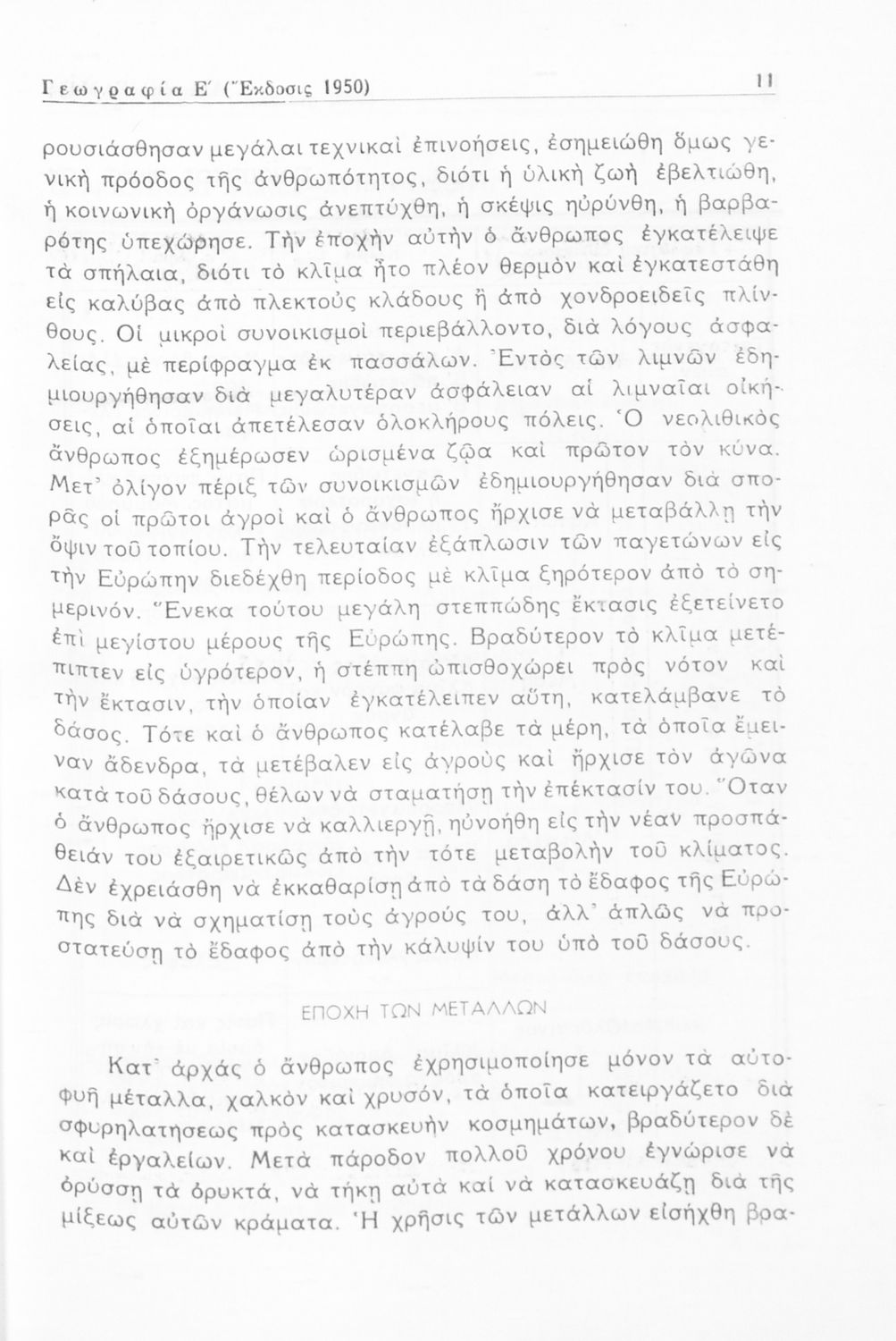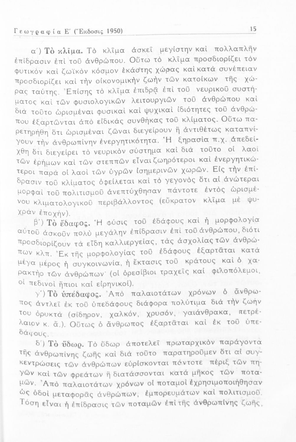 Σχολικό εγχειρίδιο Γεωγραφίας Ε' Εξαταξίου Γυμνασίου που περιλαμβάνει εισαγωγή στην ανθρωπογεωγραφία και εστιάζει στην παγκόσμια οικονομική ζωή και τις μεγάλες οικονομικές δυνάμεις. Περιέχει και γεωγραφική και οικονομική επισκόπηση της Ελλάδας καθώς και μελέτη της πολιτικής και κοινωνικής ζωής της.