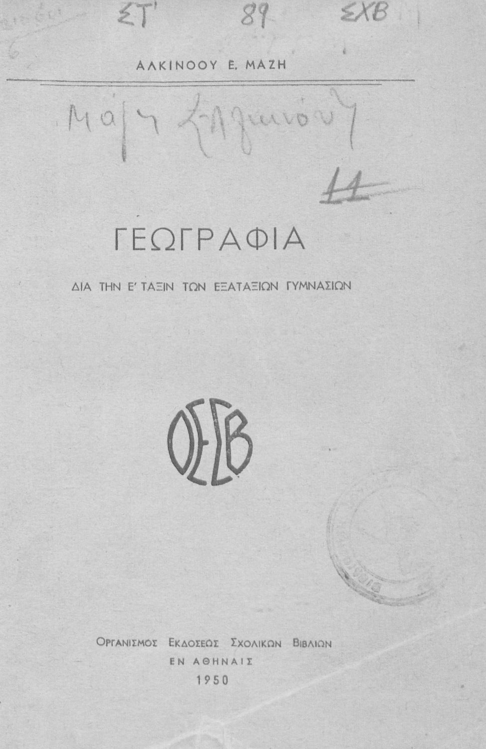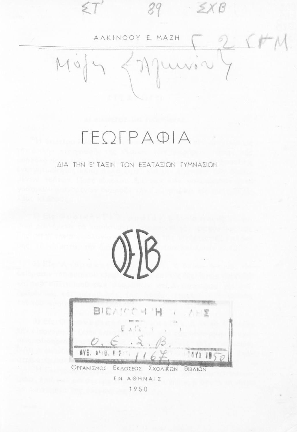 Τίτλος: Γεωγραφία δια την Ε΄ τάξιν των Εξατάξιων Γυμνασίων