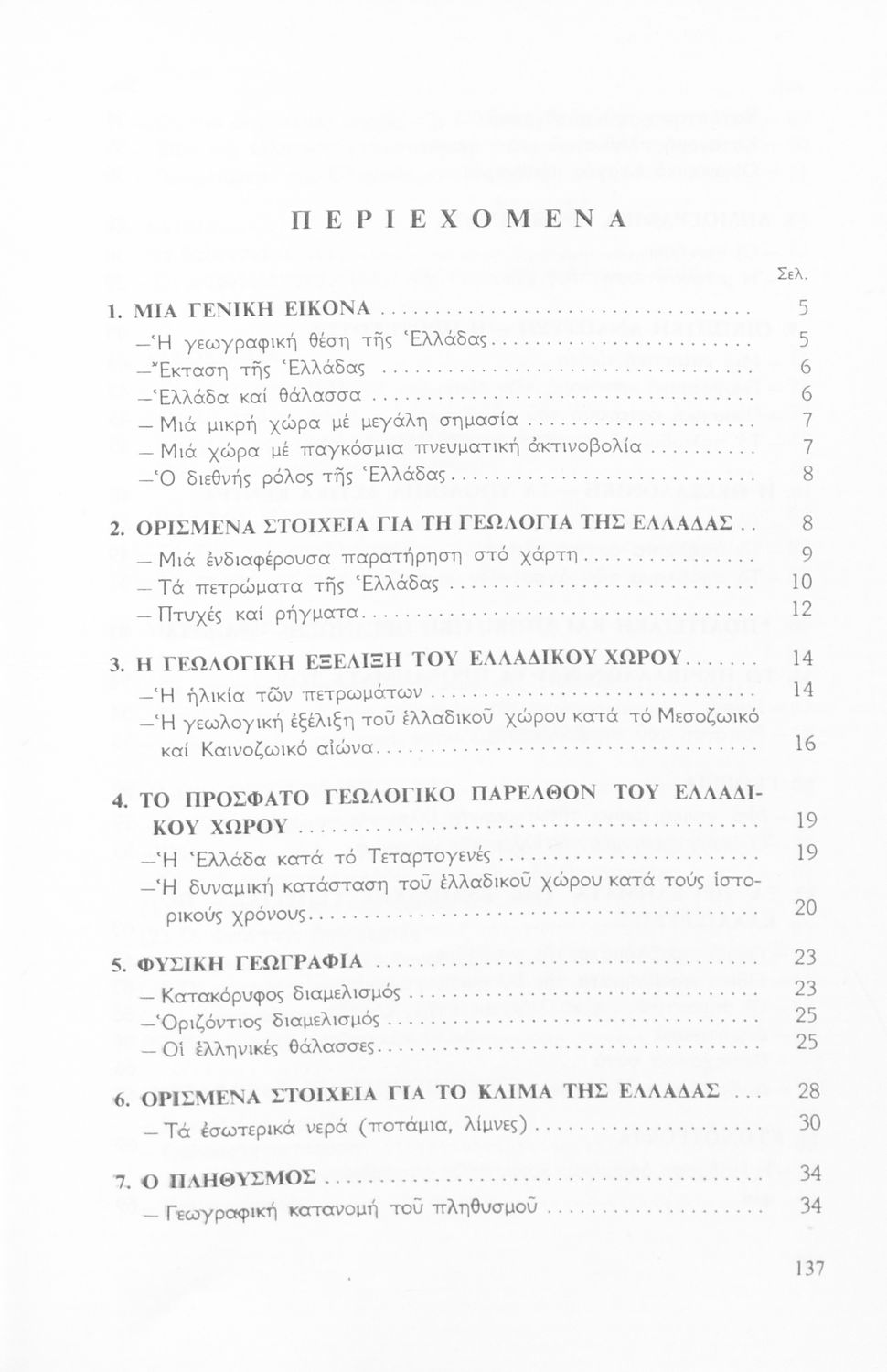 Σχολικό εγχειρίδιο Γεωγραφίας για την Γ΄ Γυμνασίου. Περιέχει στοιχεία για τη γεωλογία, το κλίμα, τον πληθυσμό της Ελλάδας. Αναφέρεται στο δημογραφικό πρόβλημα, την γεωργία, την κτηνοτροφία και την βιομηχανία ...