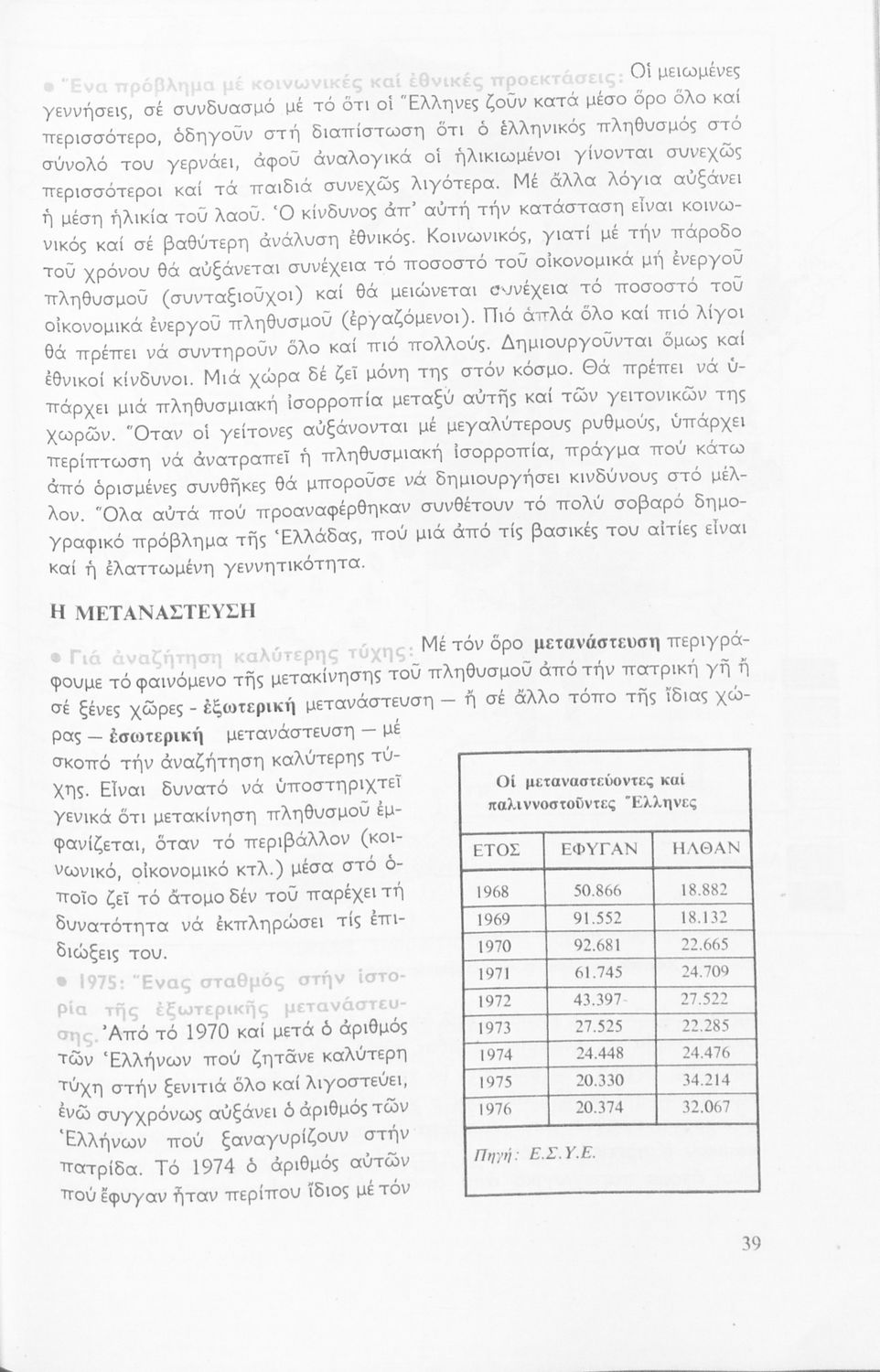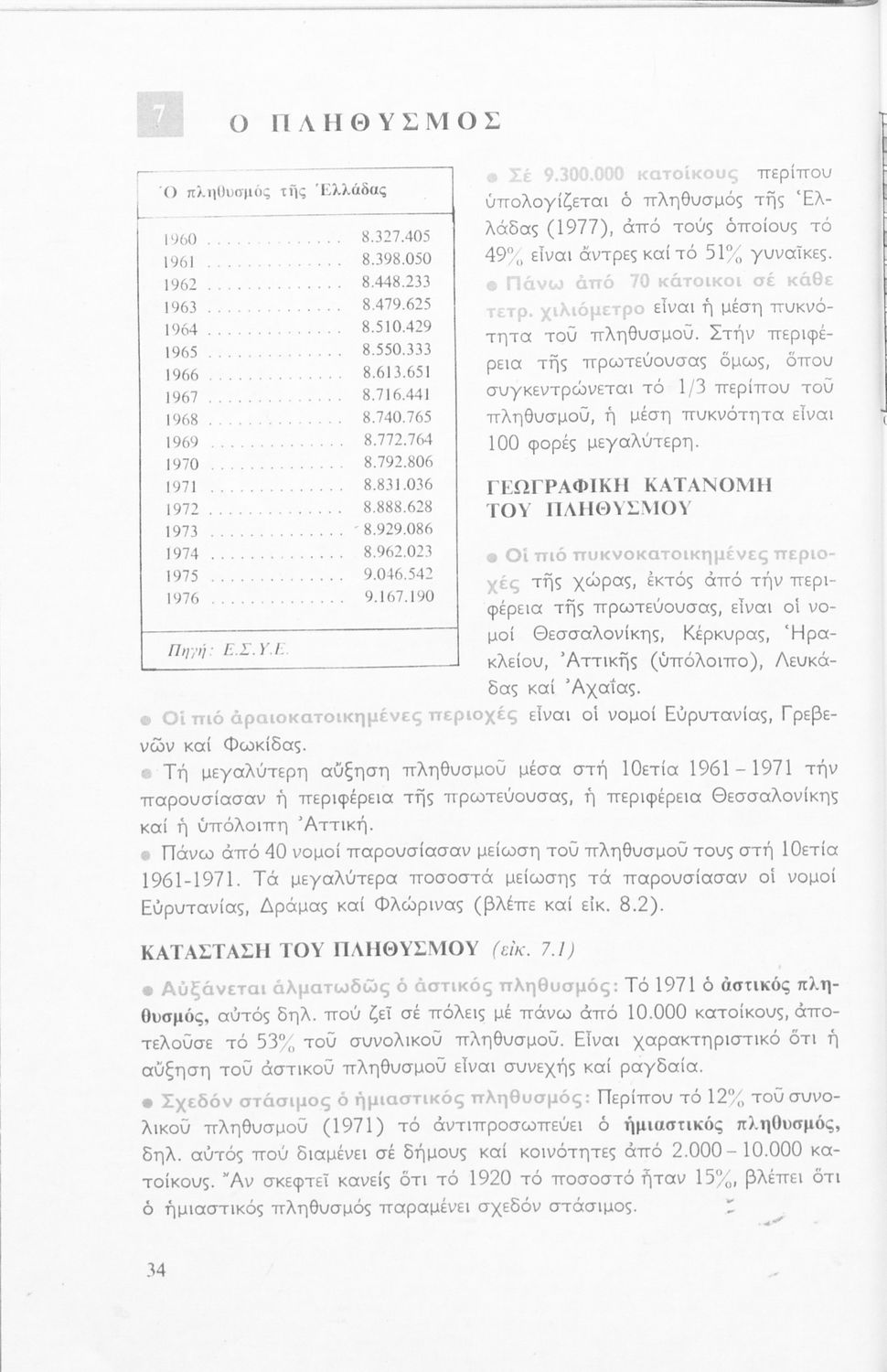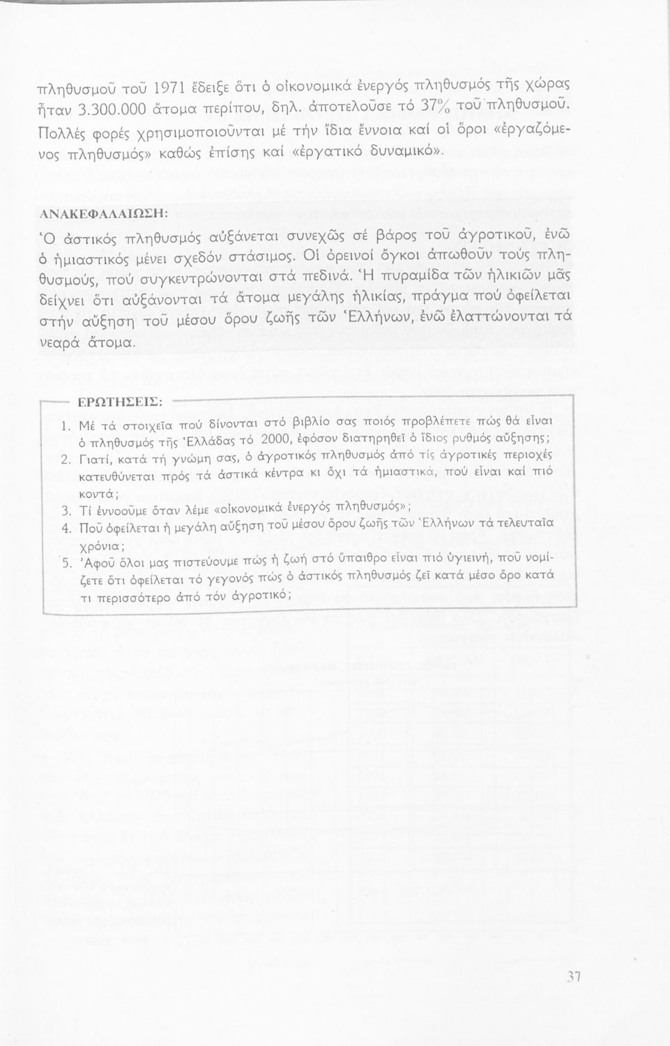 Σχολικό εγχειρίδιο Γεωγραφίας για την Γ΄ Γυμνασίου. Περιέχει στοιχεία για τη γεωλογία, το κλίμα, τον πληθυσμό της Ελλάδας. Αναφέρεται στο δημογραφικό πρόβλημα, την γεωργία, την κτηνοτροφία και την βιομηχανία ...