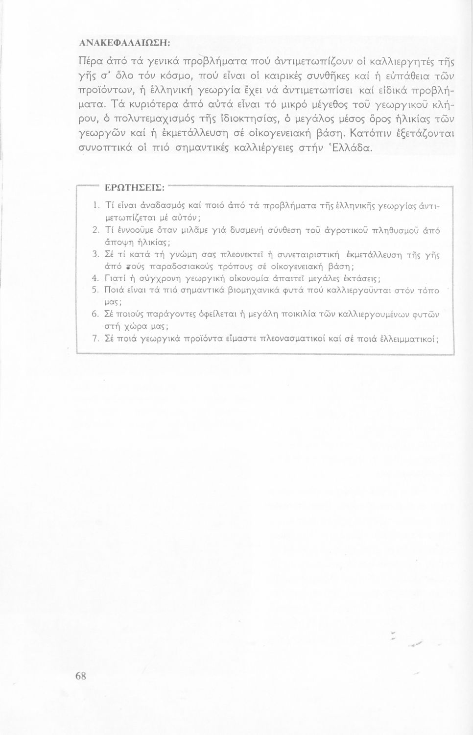 Σχολικό εγχειρίδιο Γεωγραφίας για την Γ΄ Γυμνασίου. Περιέχει στοιχεία για τη γεωλογία, το κλίμα, τον πληθυσμό της Ελλάδας. Αναφέρεται στο δημογραφικό πρόβλημα, την γεωργία, την κτηνοτροφία και την βιομηχανία ...