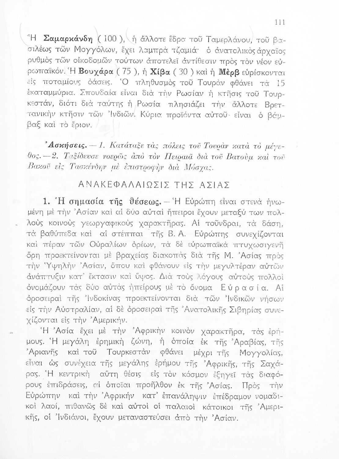 Γεωγραφία Ασίας, Αφρικής, Αμερικής και Ωκεανίας. Γ΄ τάξιν Εξατάξιων Γυμνασίων
