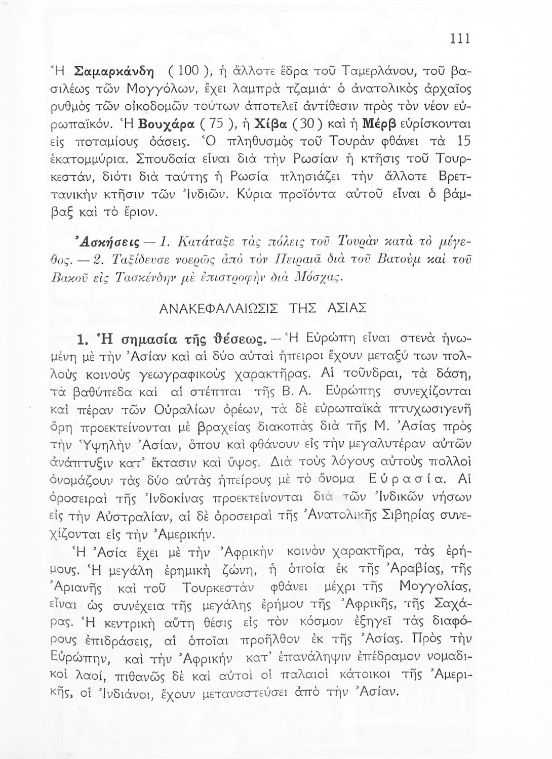 Γεωγραφία Ασίας, Αφρικής, Αμερικής και Ωκεανίας δια την Γ ́ τάξιν των Εξαταξίων Γυμνασίων