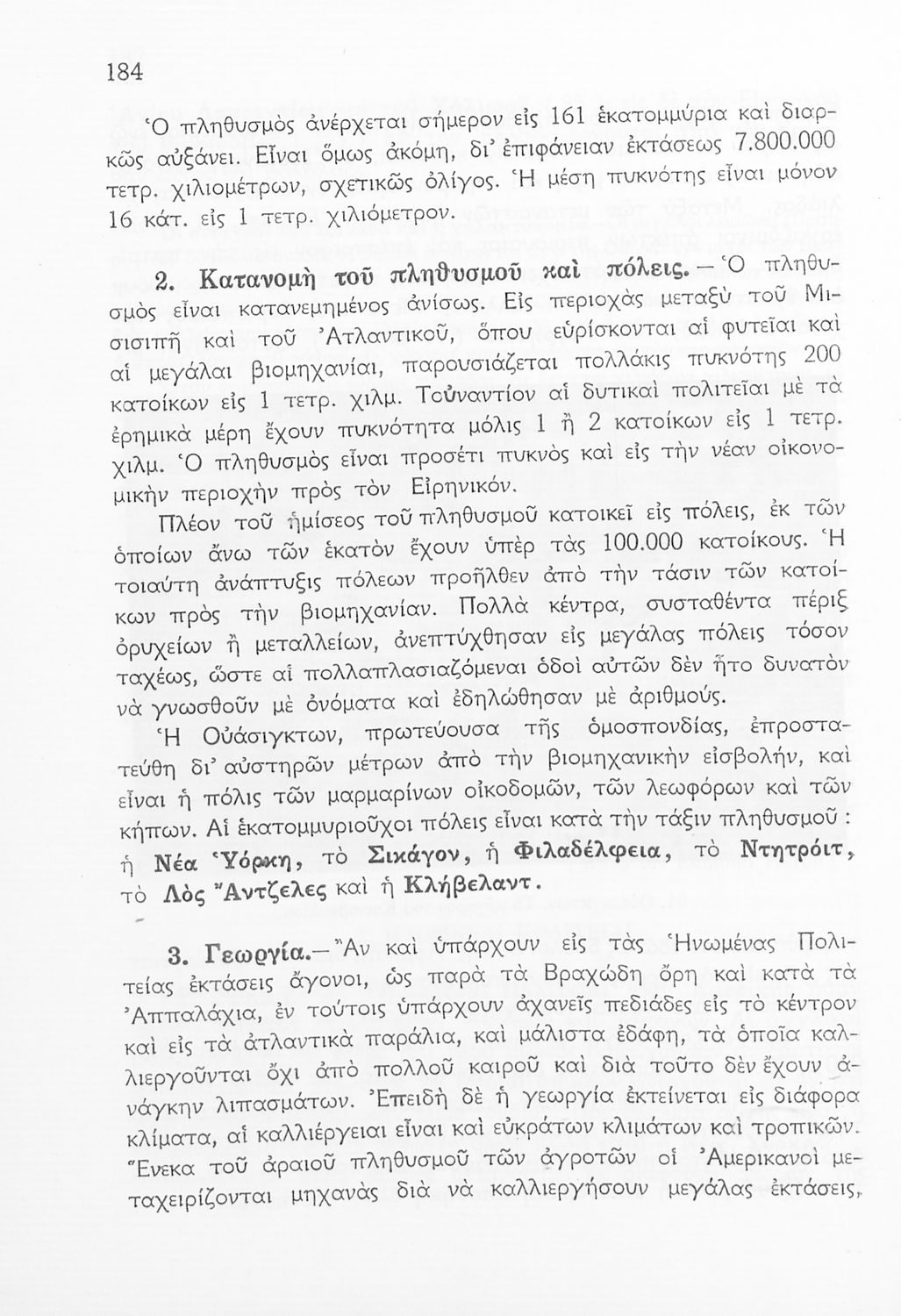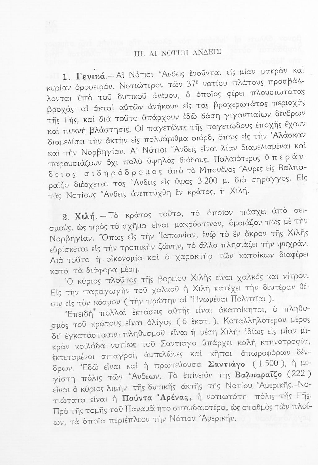 Βαθμίδα εκπαίδευσης: Δευτεροβάθμια Τάξη: Γ' Γυμνασίου Μάθημα: Γεωγραφία Γλώσσα: Καθαρεύουσα Παρουσίαση περιεχομένου: Σχολικό εγχειρίδιο Γεωγραφίας Γ΄ Γυμνασίου που παρουσιάζει τις ηπείρους εκτός της Ευρώπης από γεωφυσική, πολιτική, πολιτισμική και οικονομική σκοπιά. Γίνεται ειδική αναφορά στις παγκόσμιες συγκοινωνίες. |
