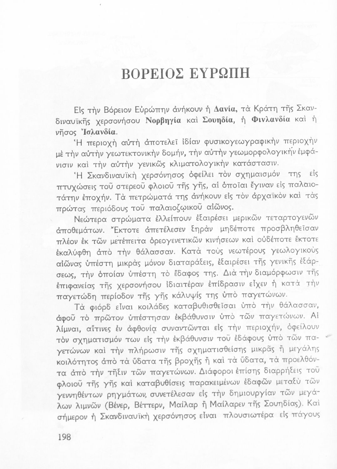 Σχολικό εγχειρίδιο Γεωγραφίας Β' Γυμνασίου που περιλαμβάνει εισαγωγή στη φυσική και μαθηματική γεωγραφία και παρουσιάζει τις χώρες της Ευρώπης από γεωμορφολογική, πολιτική, πολιτισμική και οικονομική άποψη. Περιέχει και αναφορά στις οικονομικές σχέσεις της Ελλάδας με τα ευρωπαϊκά κράτη. Φέρει το σύμβολο της δικτατορίας.