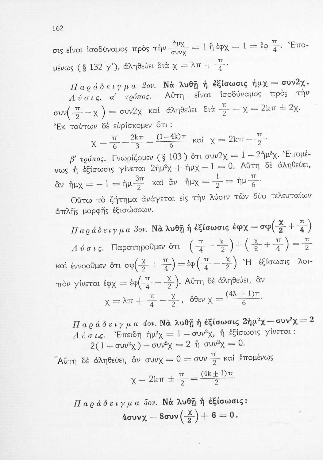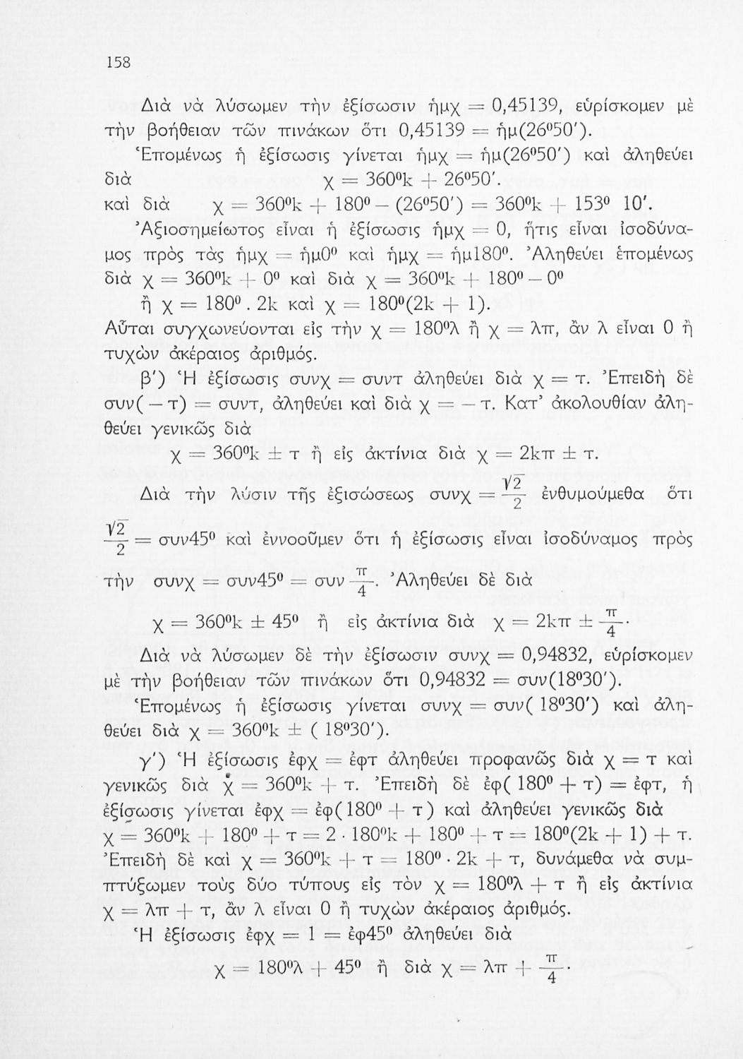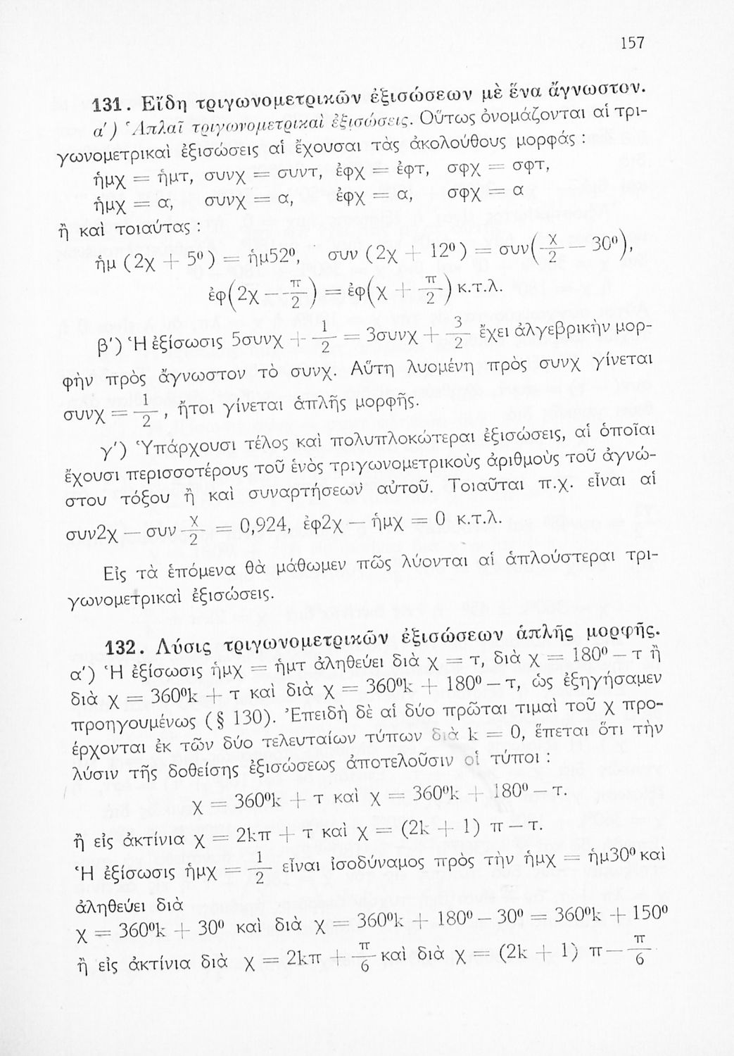 Σχολικό εγχειρίδιο Τριγωνομετρίας της Η' Γυμνασίου. Το βιβλίο περιέχει ασκήσεις τριγωνομετρίας. Εισάγει τους μαθητές στα διαφορετικά είδη τριγώνων, τις ιδιότητες και τα χαρακτηριστικά τους καθώς και στον τρόπο υπολογισμού διαφόρων στοιχείων τους όπως το εμβαδόν και η περιφέρεια.