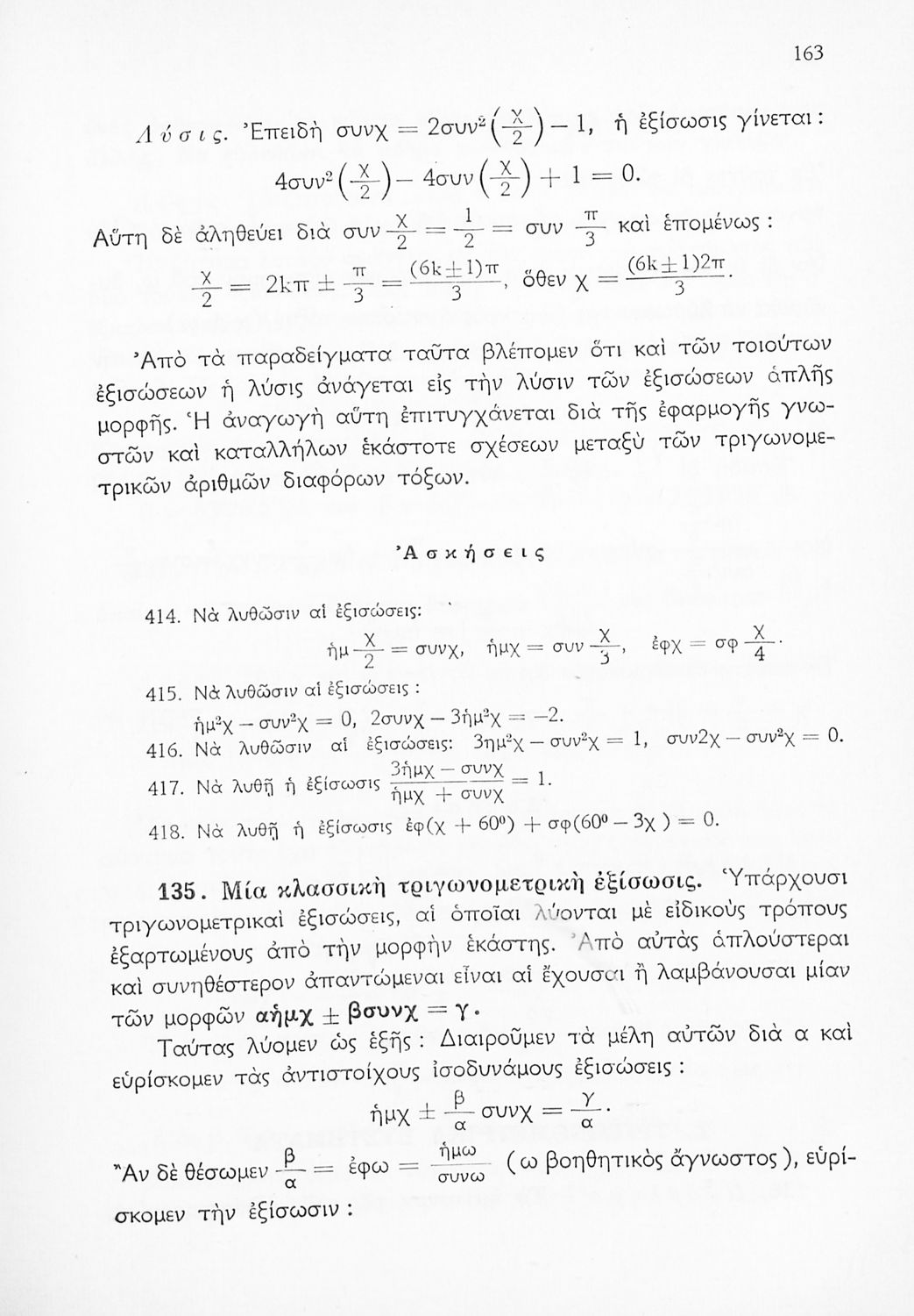 Τριγωνομετρία δια την Η' τάξιν των Γυμνασίων