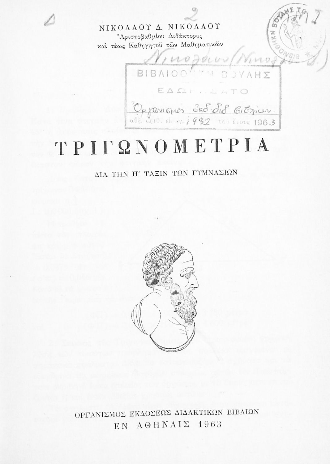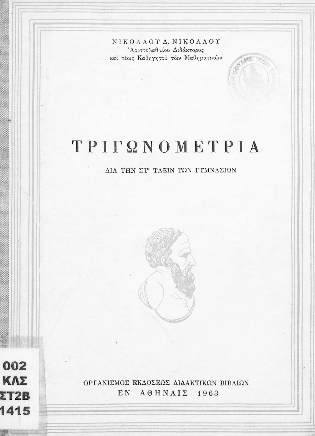 Τίτλος: Τριγωνομετρία δια την Η' τάξιν των Γυμνασίων