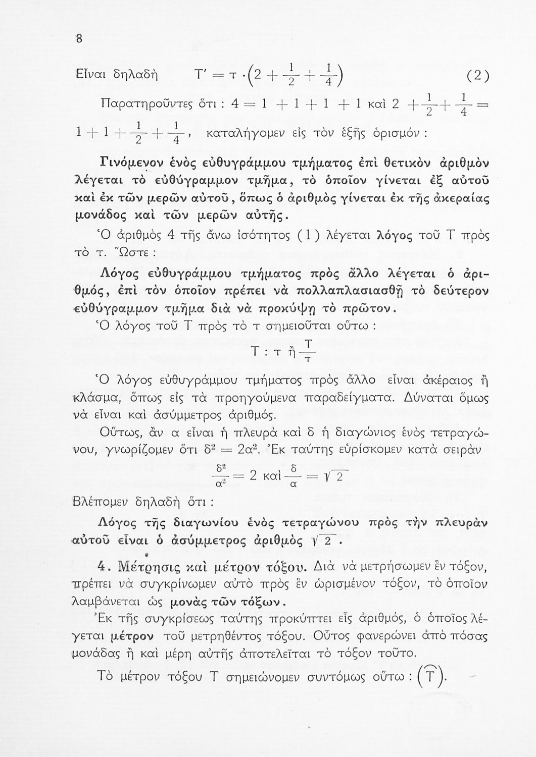 Σχολικό εγχειρίδιο Τριγωνομετρίας της Η' Γυμνασίου. Το βιβλίο περιέχει ασκήσεις τριγωνομετρίας. Εισάγει τους μαθητές στα διαφορετικά είδη τριγώνων, τις ιδιότητες και τα χαρακτηριστικά τους καθώς και στον τρόπο υπολογισμού διαφόρων στοιχείων τους όπως το εμβαδόν και η περιφέρεια.