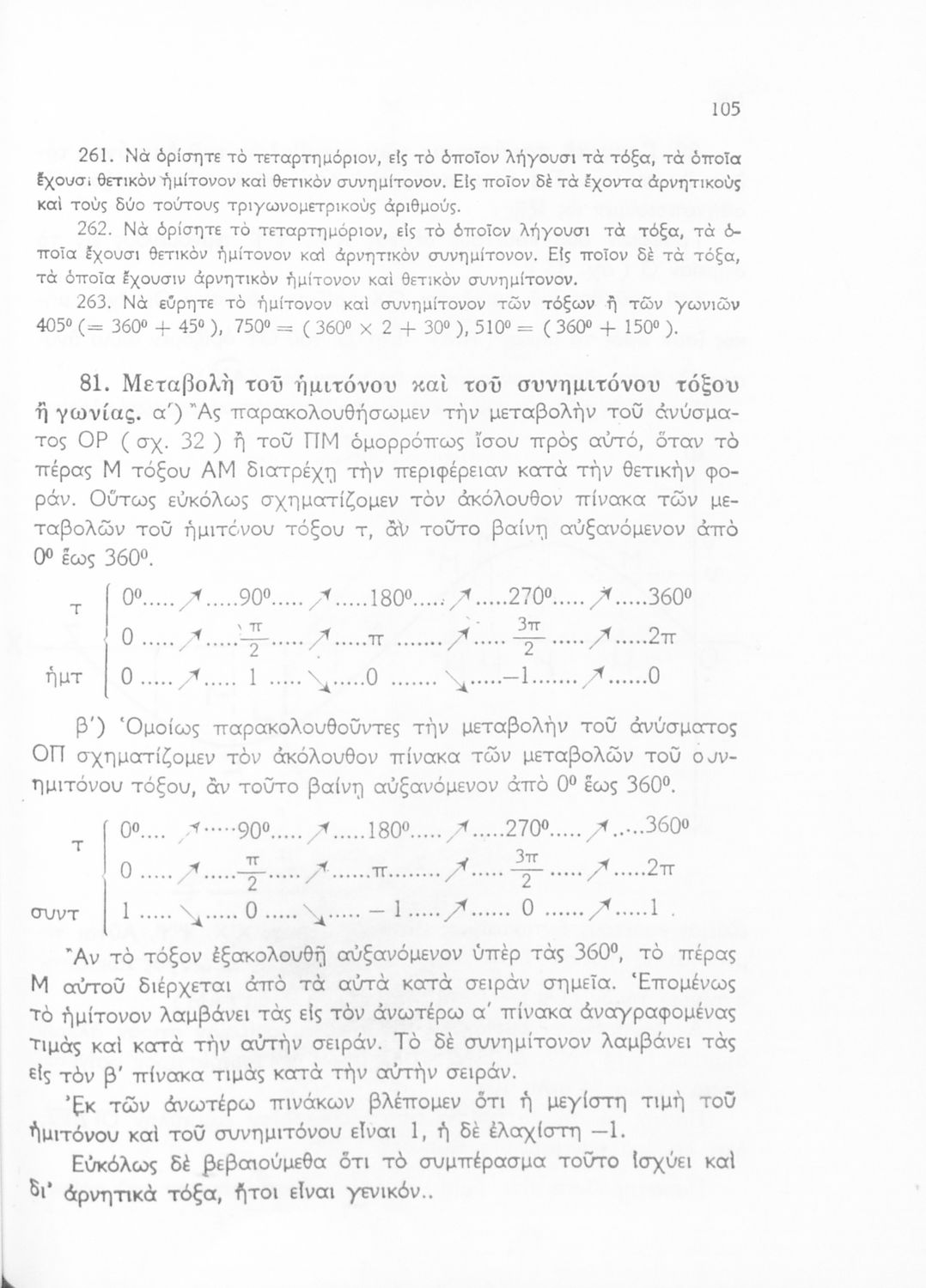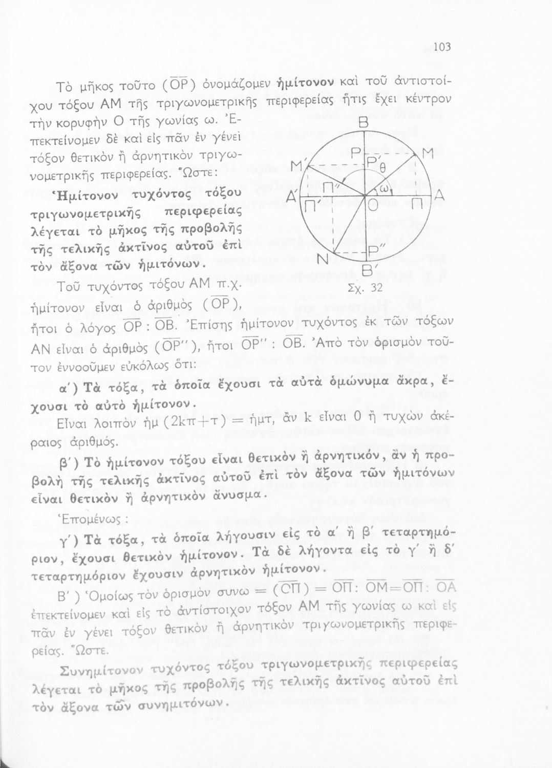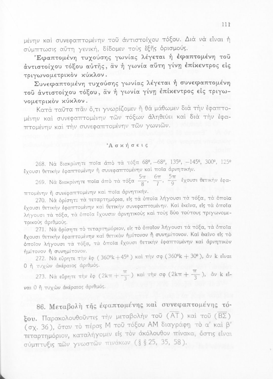 Σχολικό εγχειρίδιο Τριγωνομετρίας Γ΄ Λυκείου χωρισμένο σε ορισμούς, θεωρία, παραδείγματα και ασκήσεις.