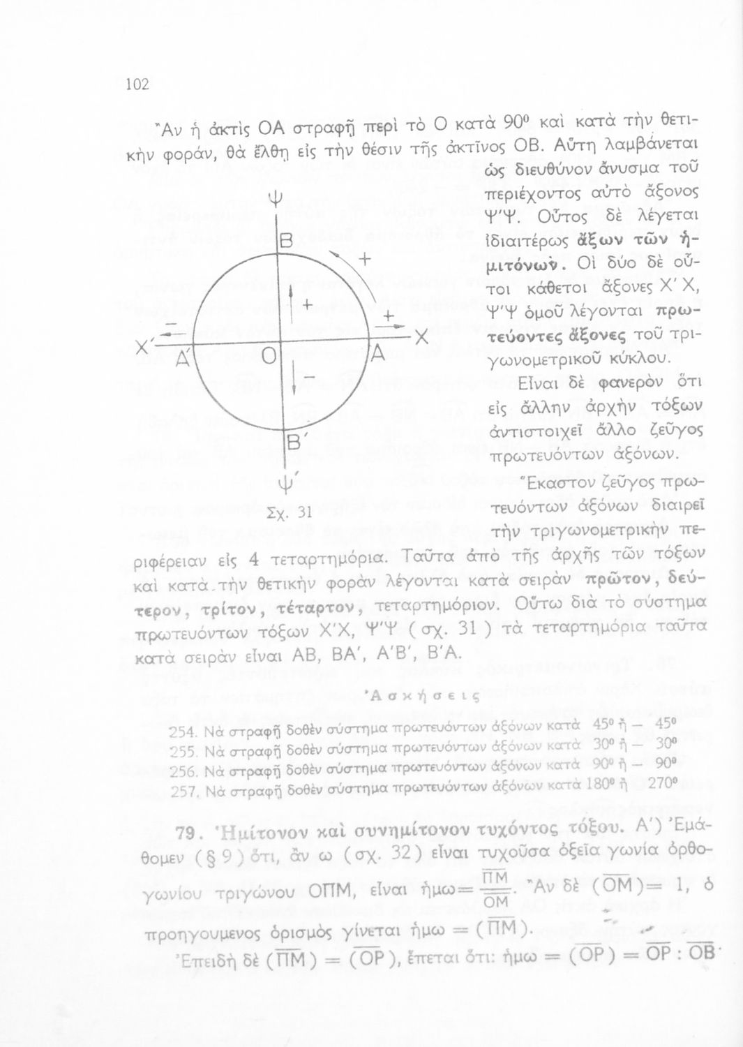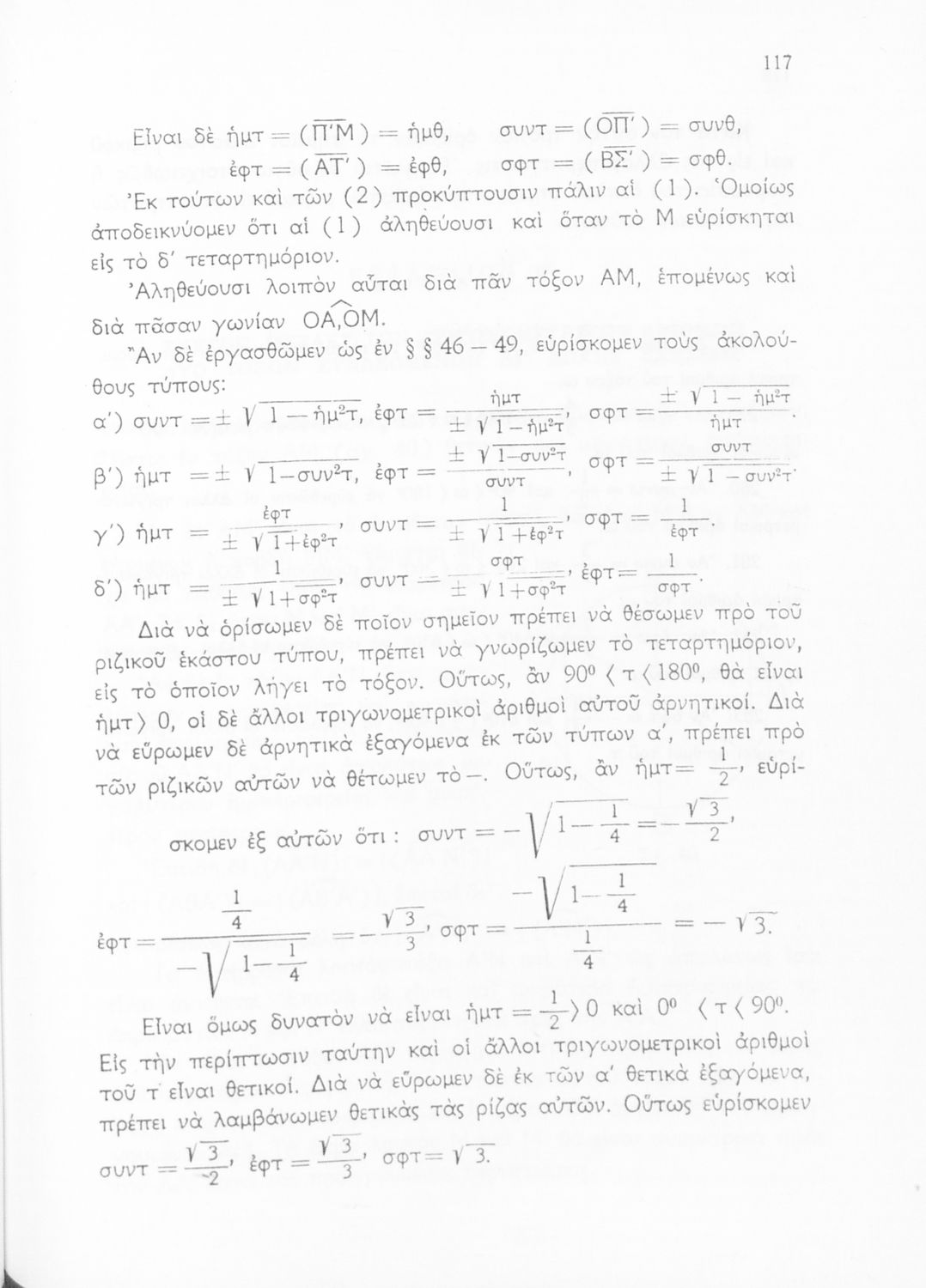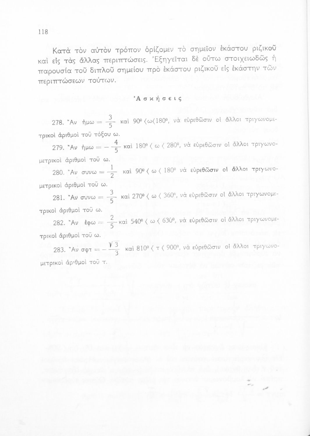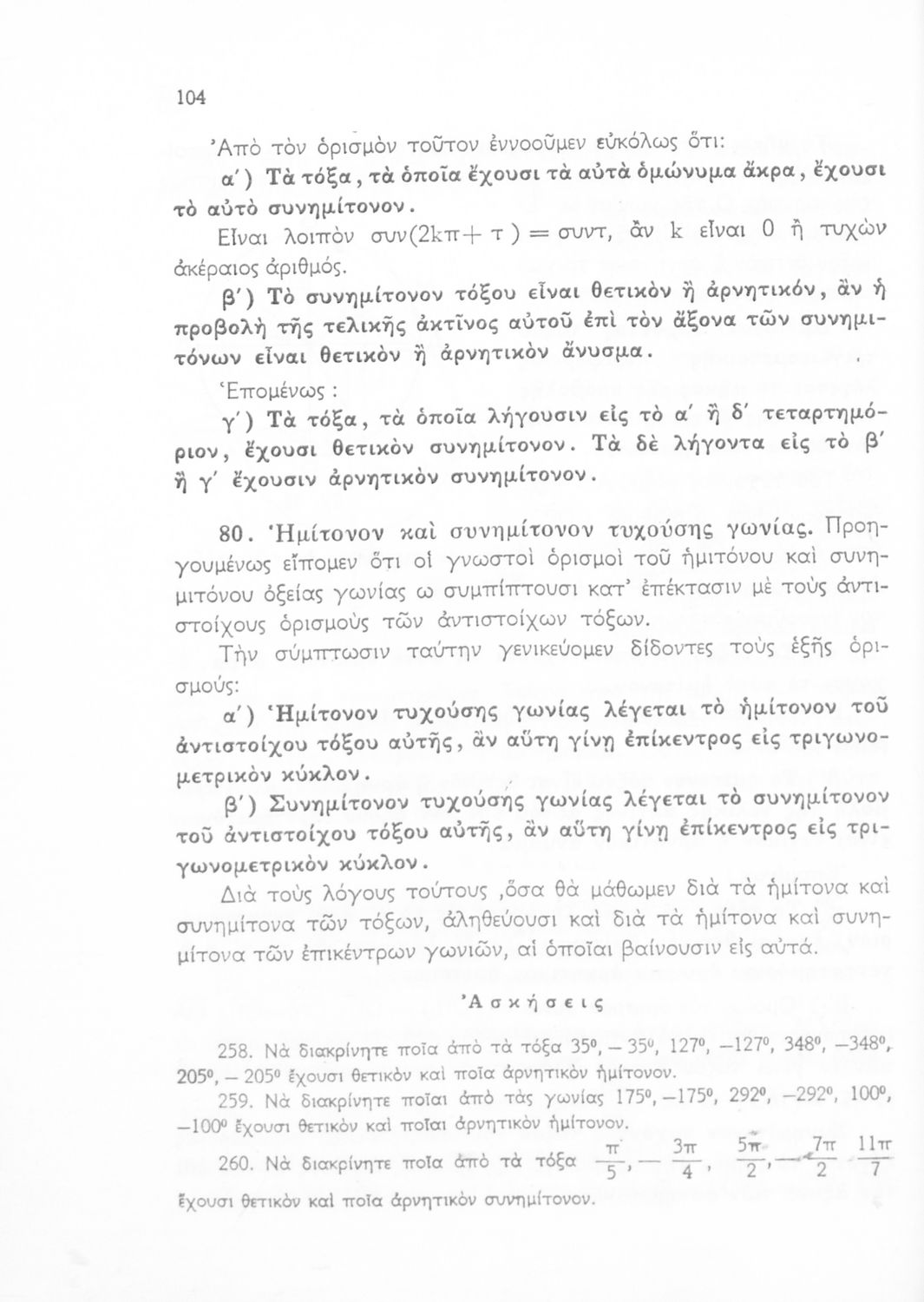 Σχολικό εγχειρίδιο Τριγωνομετρίας Γ΄ Λυκείου χωρισμένο σε ορισμούς, θεωρία, παραδείγματα και ασκήσεις.