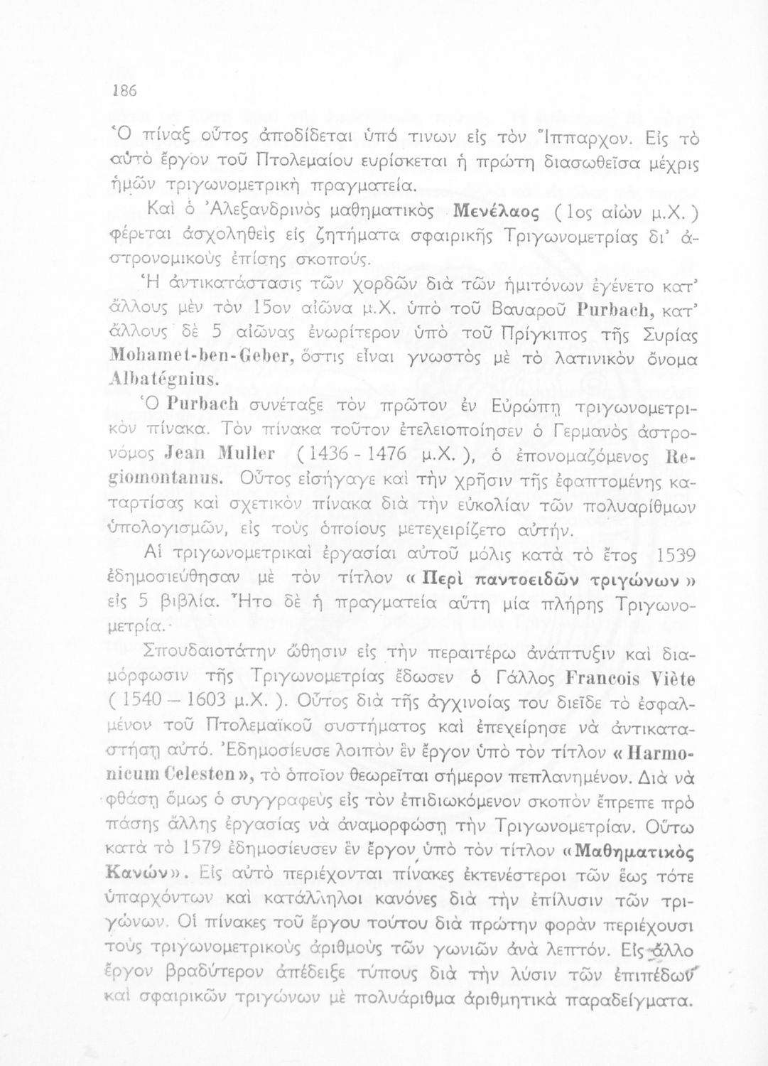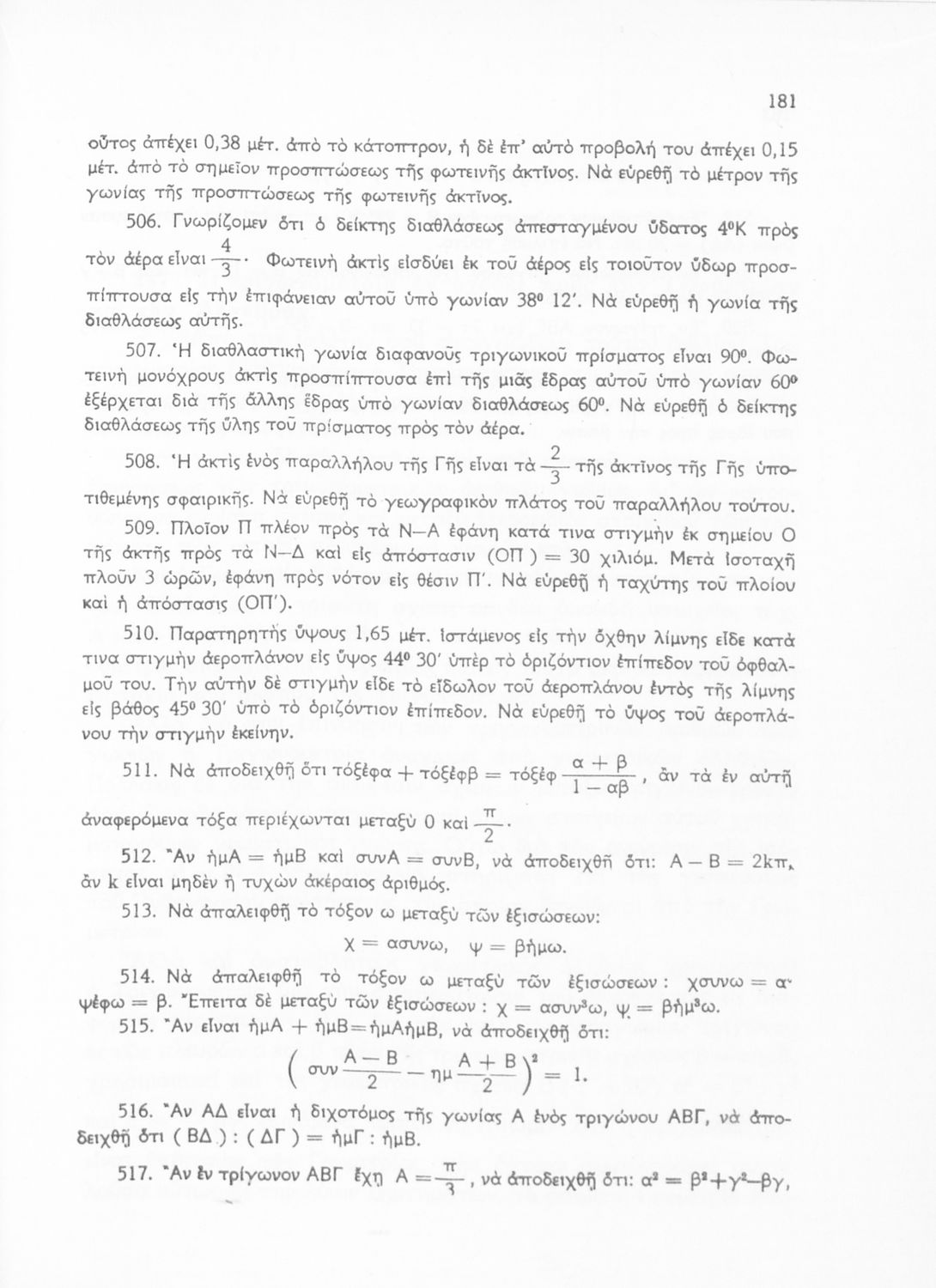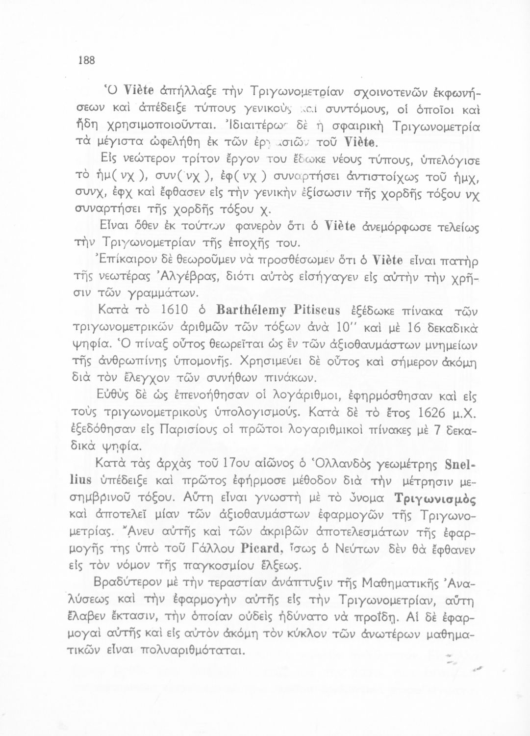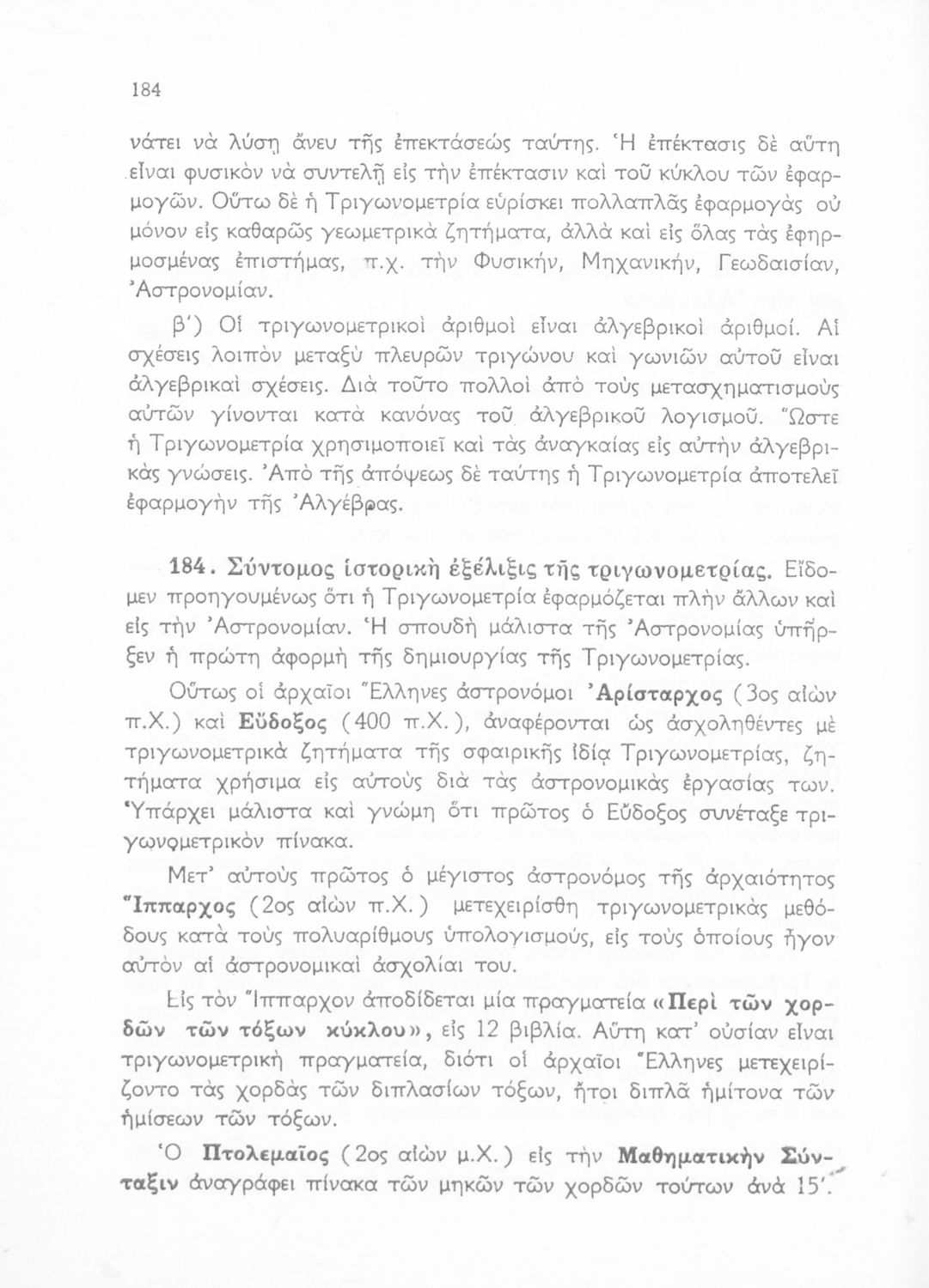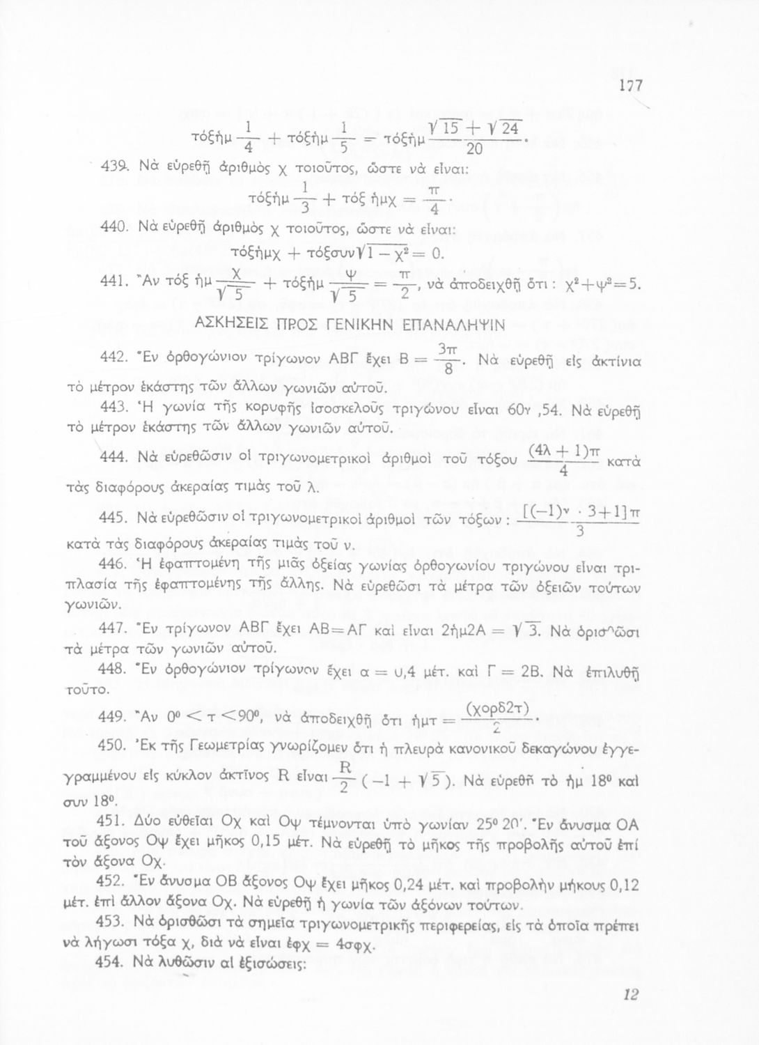 Βαθμίδα εκπαίδευσης: Δευτεροβάθμια Τάξη: Γ' Λυκείου Μάθημα: Τριγωνομετρία Γλώσσα: Καθαρεύουσα Παρουσίαση περιεχομένου: Σχολικό εγχειρίδιο Μαθηματικών της Γ΄ Λυκείου. Το βιβλίο περιέχει ασκήσεις τριγωνομετρίας. Εισάγει τους μαθητές στα διαφορετικά είδη τριγώνων, τις ιδιότητες και τα χαρακτηριστικά τους καθώς και στον τρόπο υπολογισμού διαφόρων στοιχείων τους όπως το εμβαδόν και η περιφέρεια. |