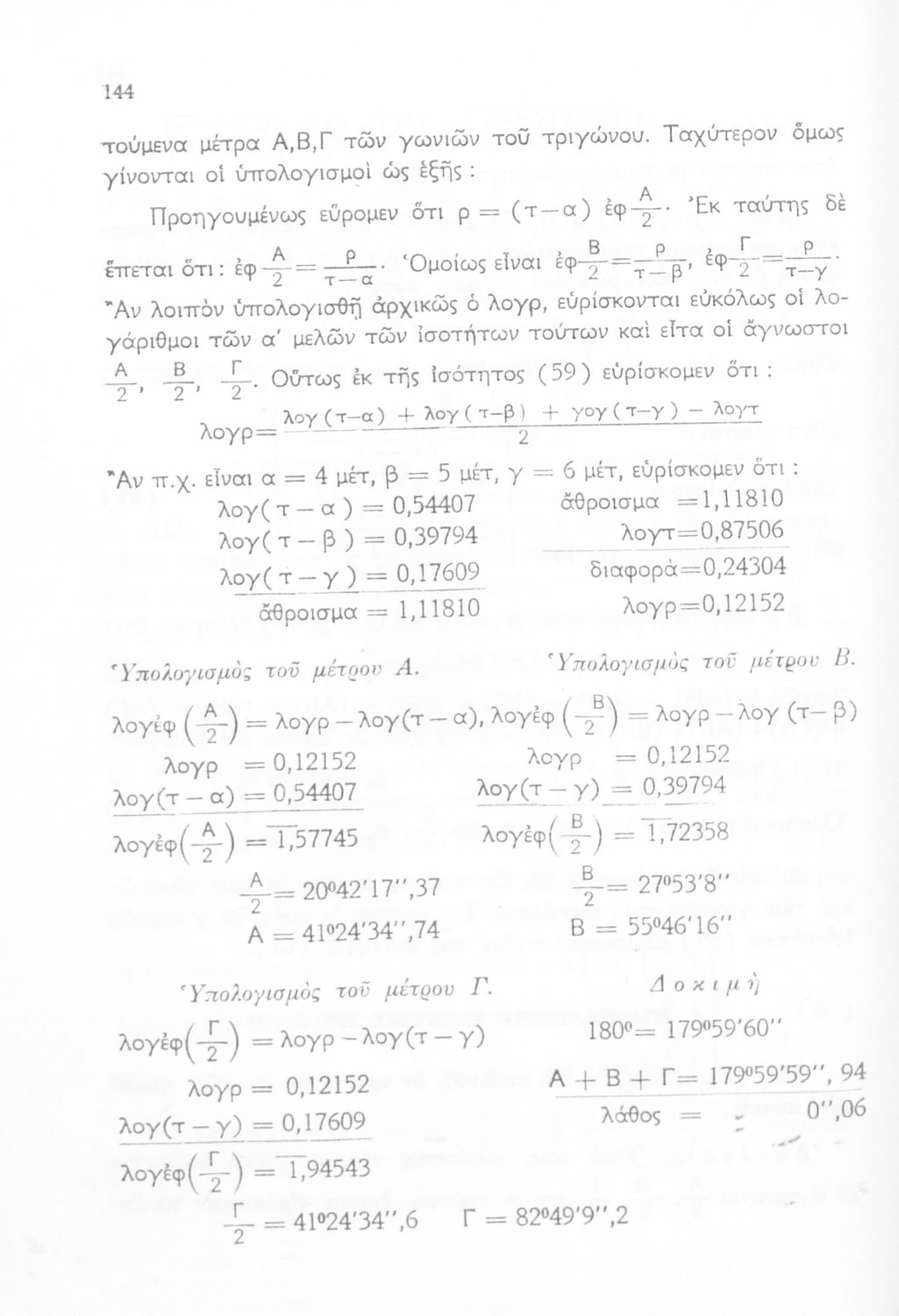 Μαθητικό βοήθημα Τριγωνομετρίας της Δ΄ Γυμνασίου. Το βιβλίο περιέχει ασκήσεις υπολογισμού των μεταξύ των διαφόρων στοιχείων των τριγώνων.