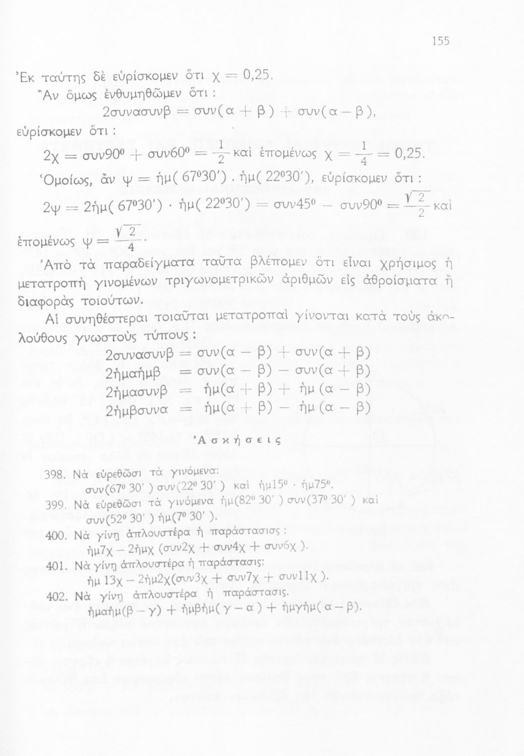 Σχολικό εγχειρίδιο Τριγωνομετρίας για τις Δ΄, Ε΄ και ΣΤ΄ Γυμνασίου που περιλαμβάνει θεωρία και ασκήσεις. Φέρει το σύμβολο της δικτατορίας.