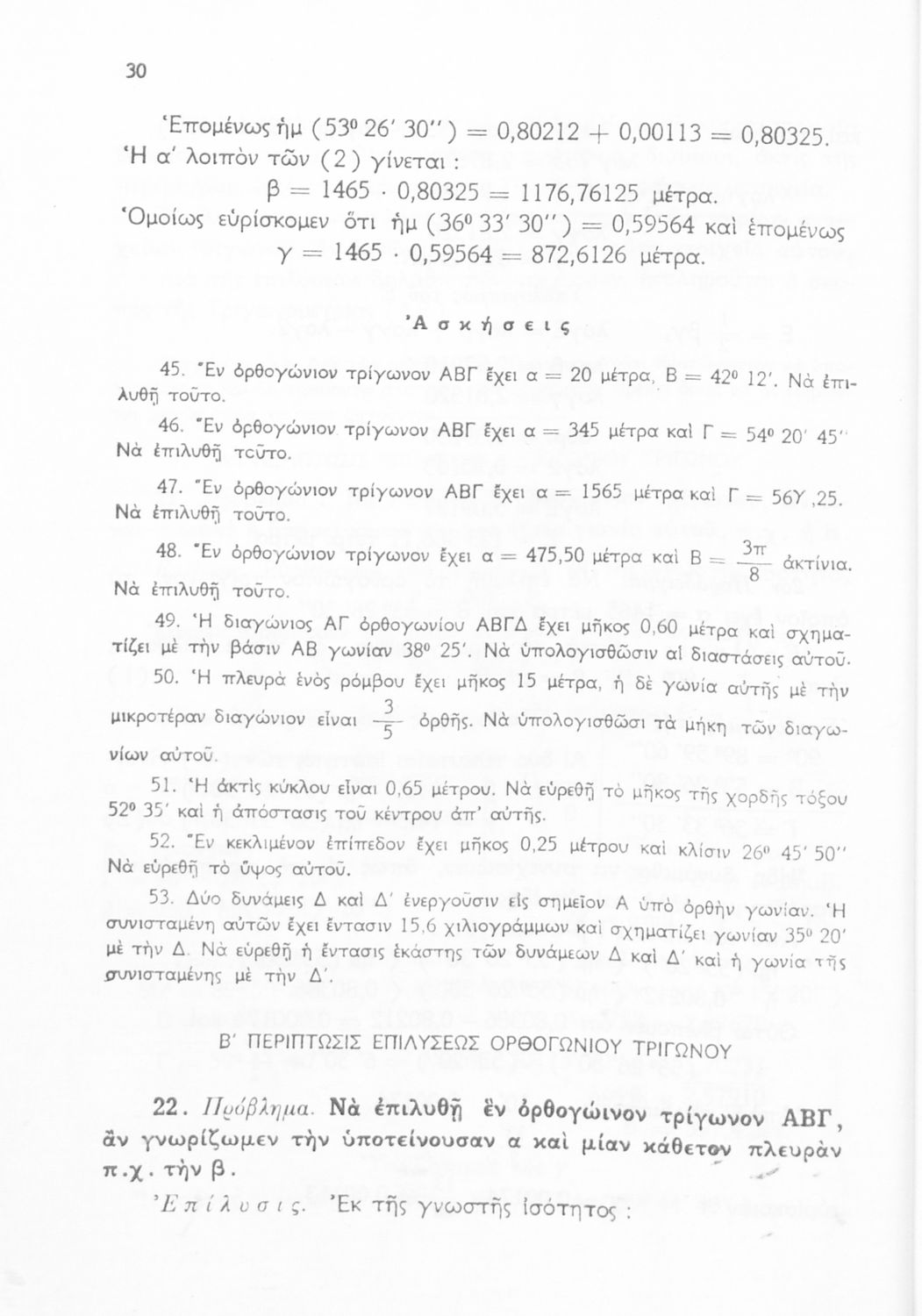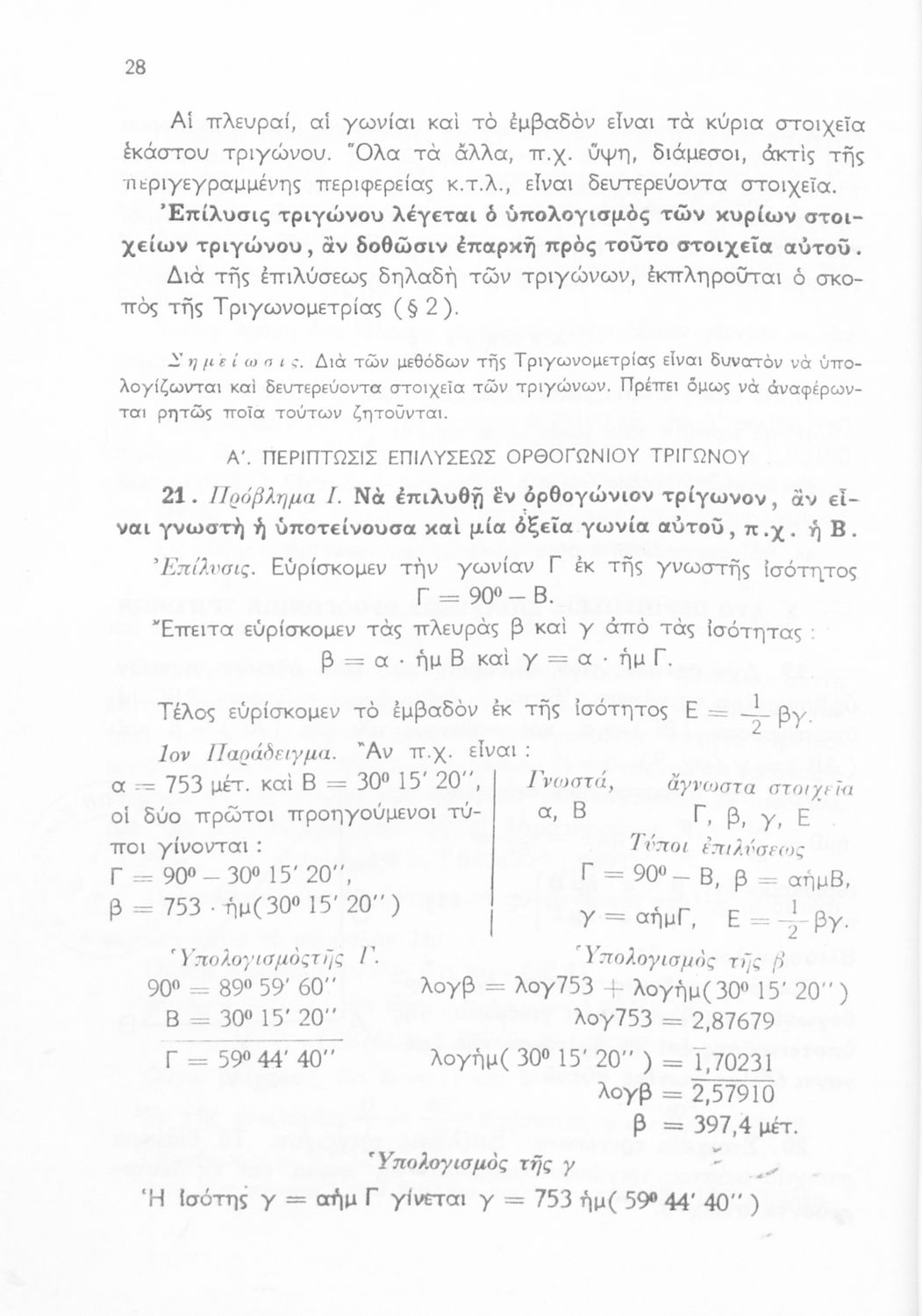 Μαθητικό βοήθημα Τριγωνομετρίας της Δ΄ Γυμνασίου. Το βιβλίο περιέχει ασκήσεις υπολογισμού των μεταξύ των διαφόρων στοιχείων των τριγώνων.