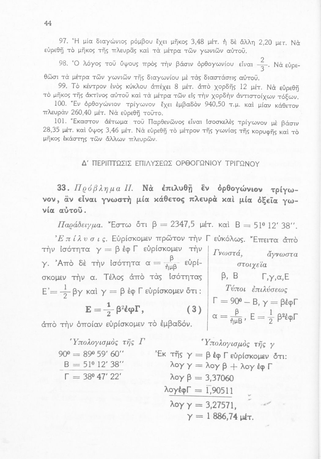 520 ## _aΜαθητικό βοήθημα Τριγωνομετρίας της Δ΄ Γυμνασίου. Το βιβλίο περιέχει ασκήσεις υπολογισμού των μεταξύ των διαφόρων στοιχείων των τριγώνων.