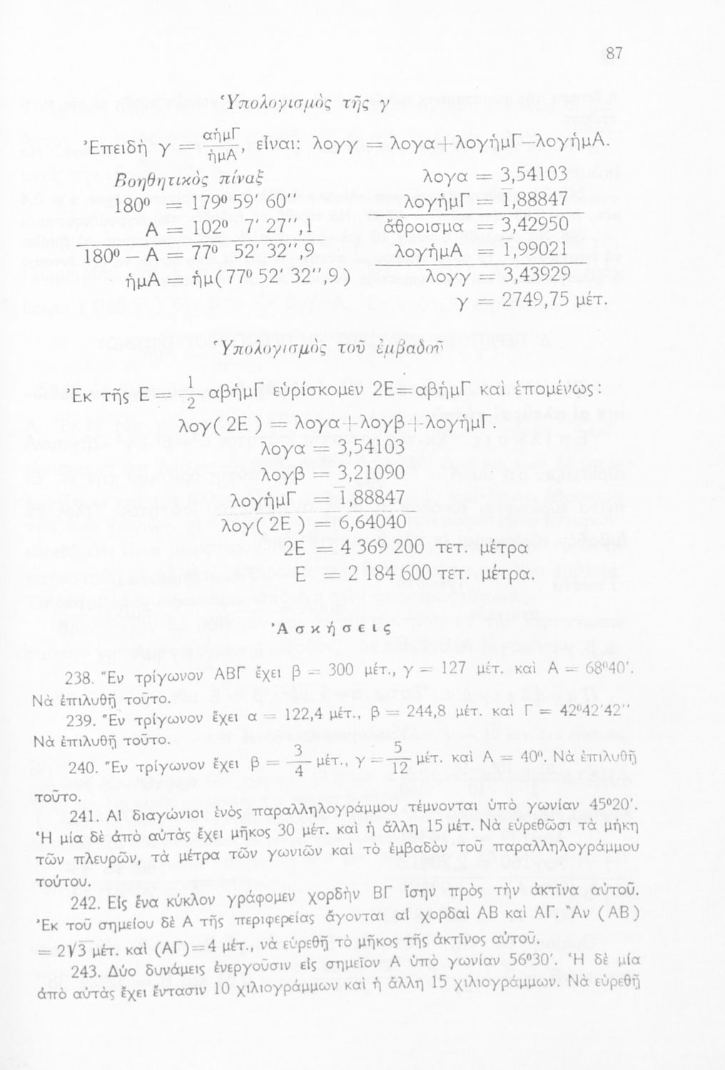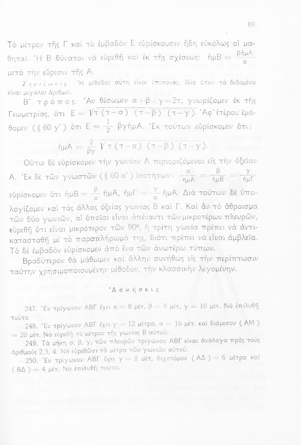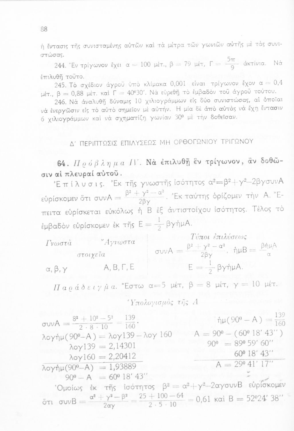 Μαθητικό βοήθημα Τριγωνομετρίας της Δ΄ Γυμνασίου. Το βιβλίο περιέχει ασκήσεις υπολογισμού των μεταξύ των διαφόρων στοιχείων των τριγώνων.