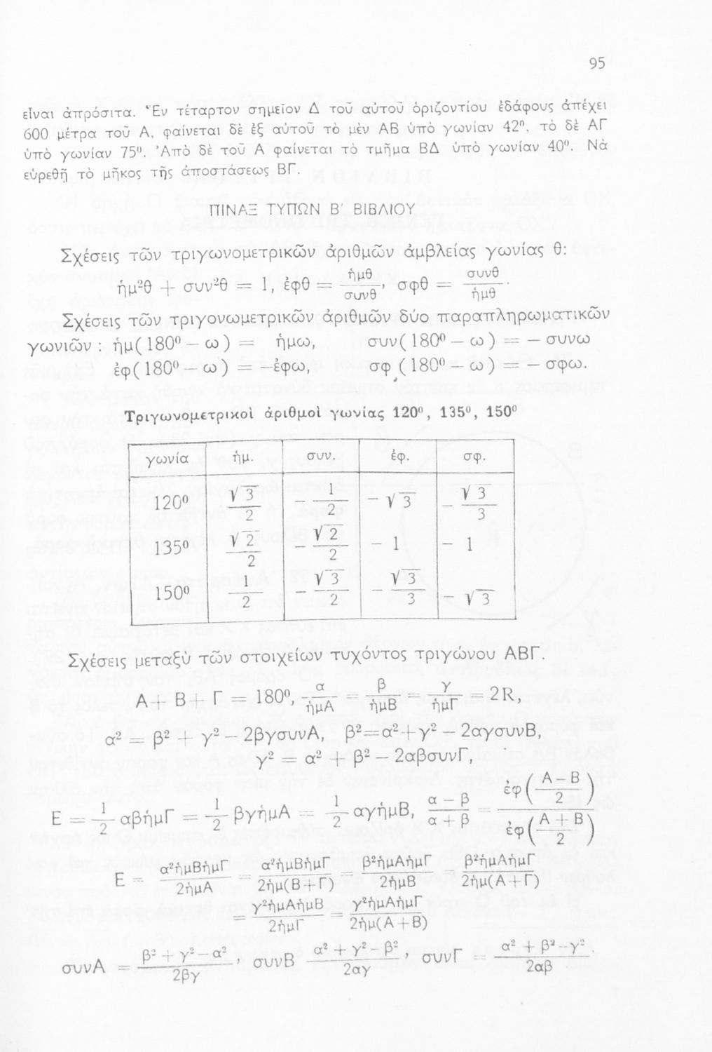 Σχολικό εγχειρίδιο Τριγωνομετρίας για τις Δ΄, Ε΄ και ΣΤ΄ Γυμνασίου που περιλαμβάνει θεωρία και ασκήσεις. Φέρει το σύμβολο της δικτατορίας.