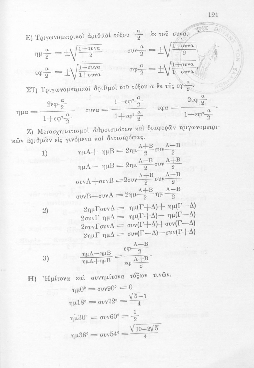 Τίτλος: Τριγωνομετρία δια την ΣΤ΄ τάξιν των Γυμνασίων παλαιού τύπου