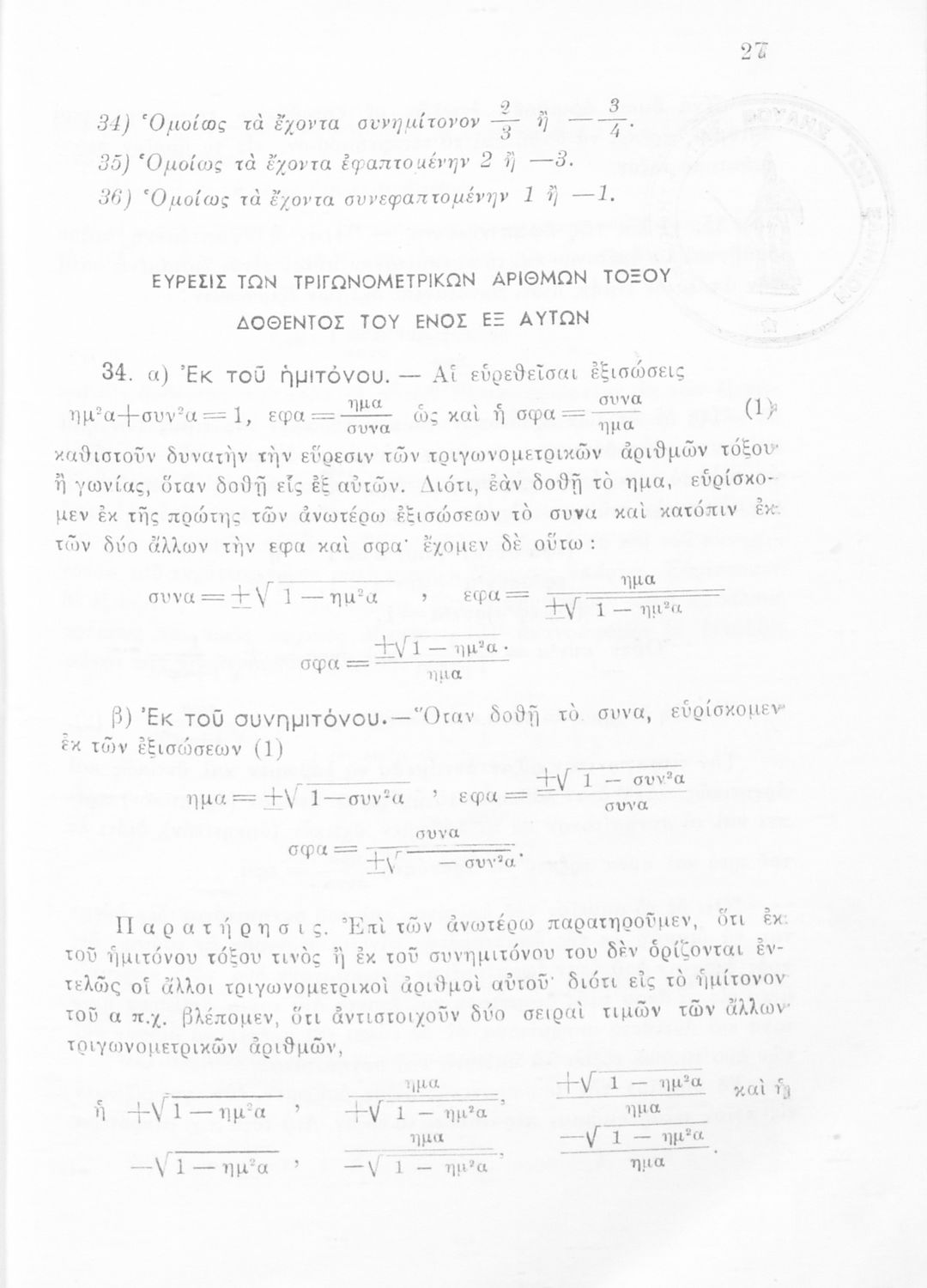 245 0# _aΤριγωνομετρία δια την ΣΤ΄ τάξιν των Γυμνασίων παλαιού τύπου