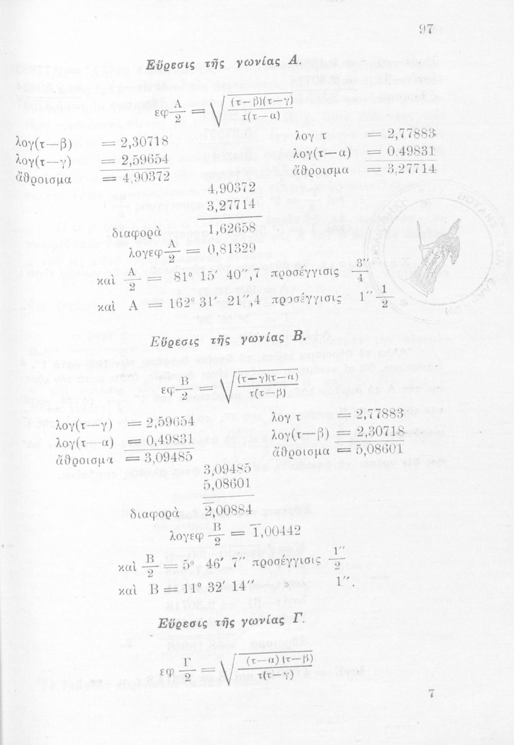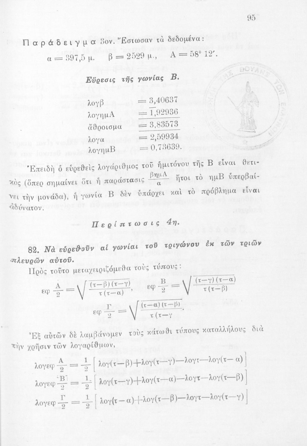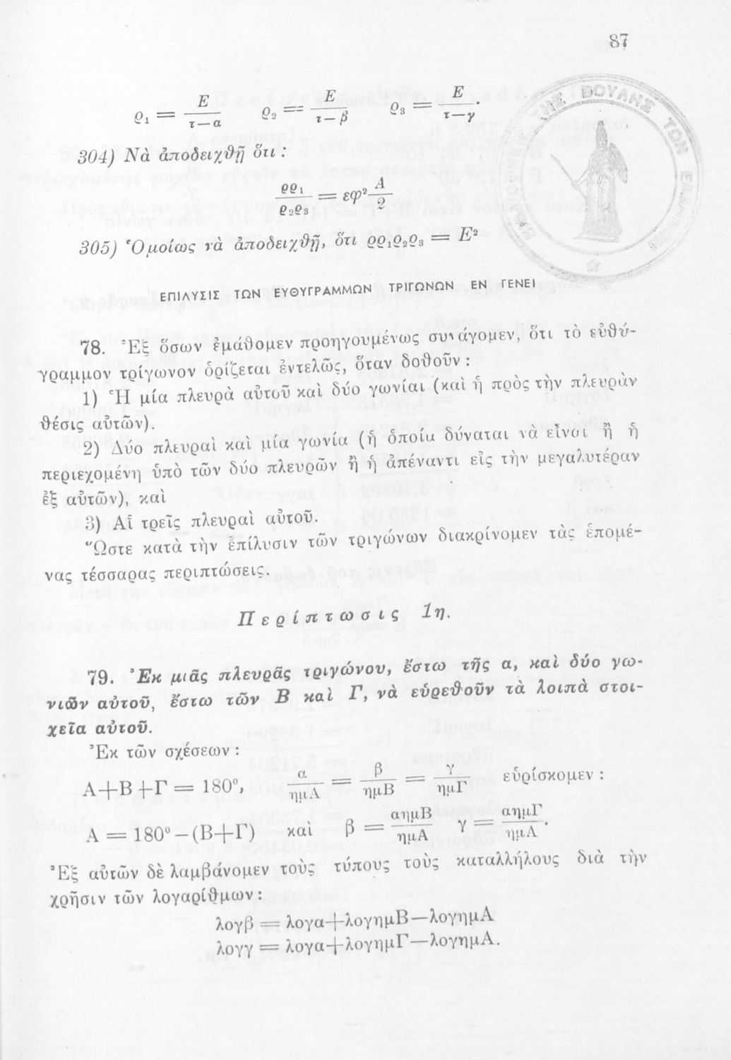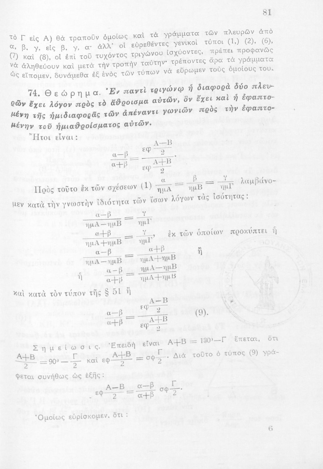 Τίτλος: Τριγωνομετρία δια την ΣΤ΄ τάξιν των Γυμνασίων παλαιού τύπου
