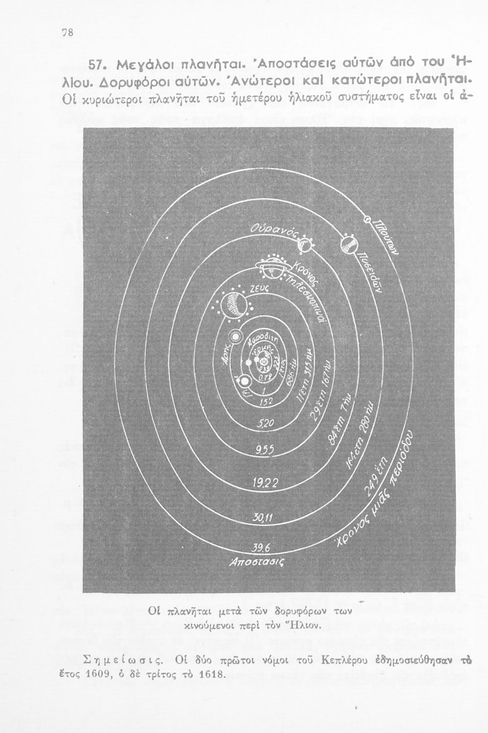 Σχολικό εγχειρίδιο Κοσμογραφίας Γ΄ Λυκείου που εστιάζει στην κίνηση των πλανητών και στον τρόπο υπολογισμού της τροχιάς τους.