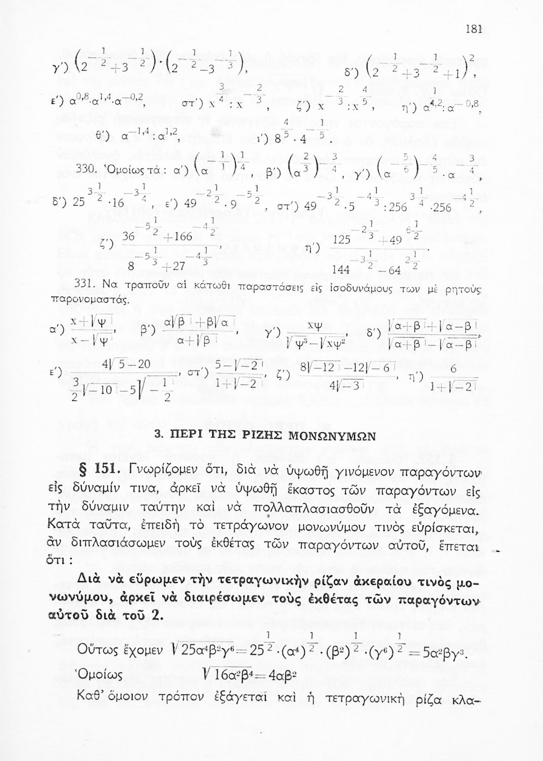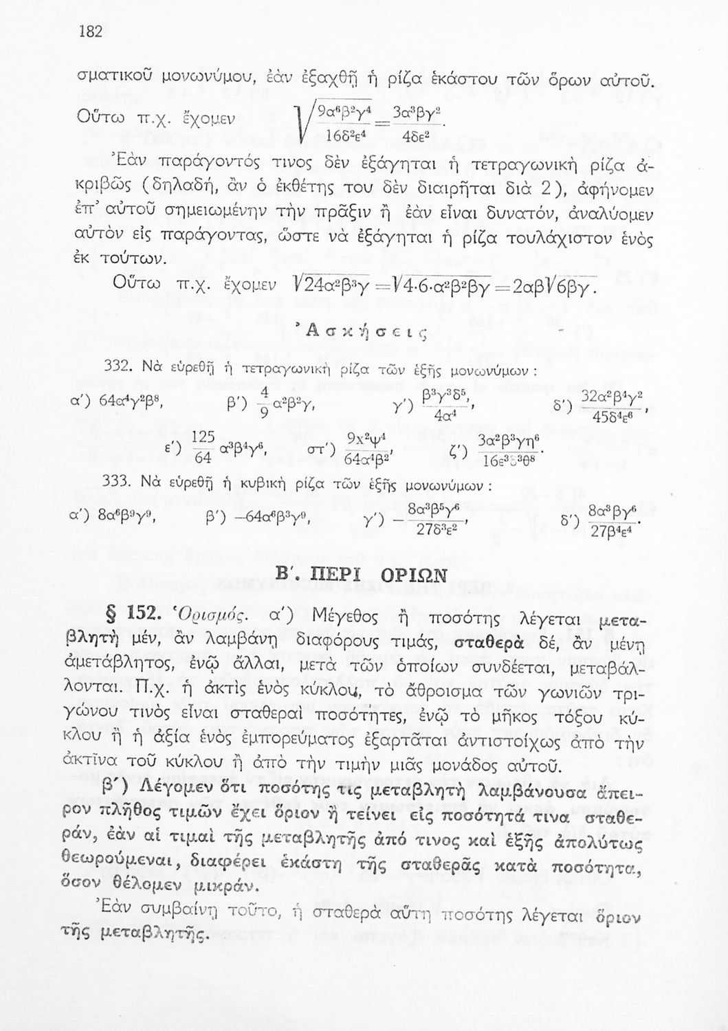 Άλγεβρα δια τας ανωτέρας τάξεις των Γυμνασίων