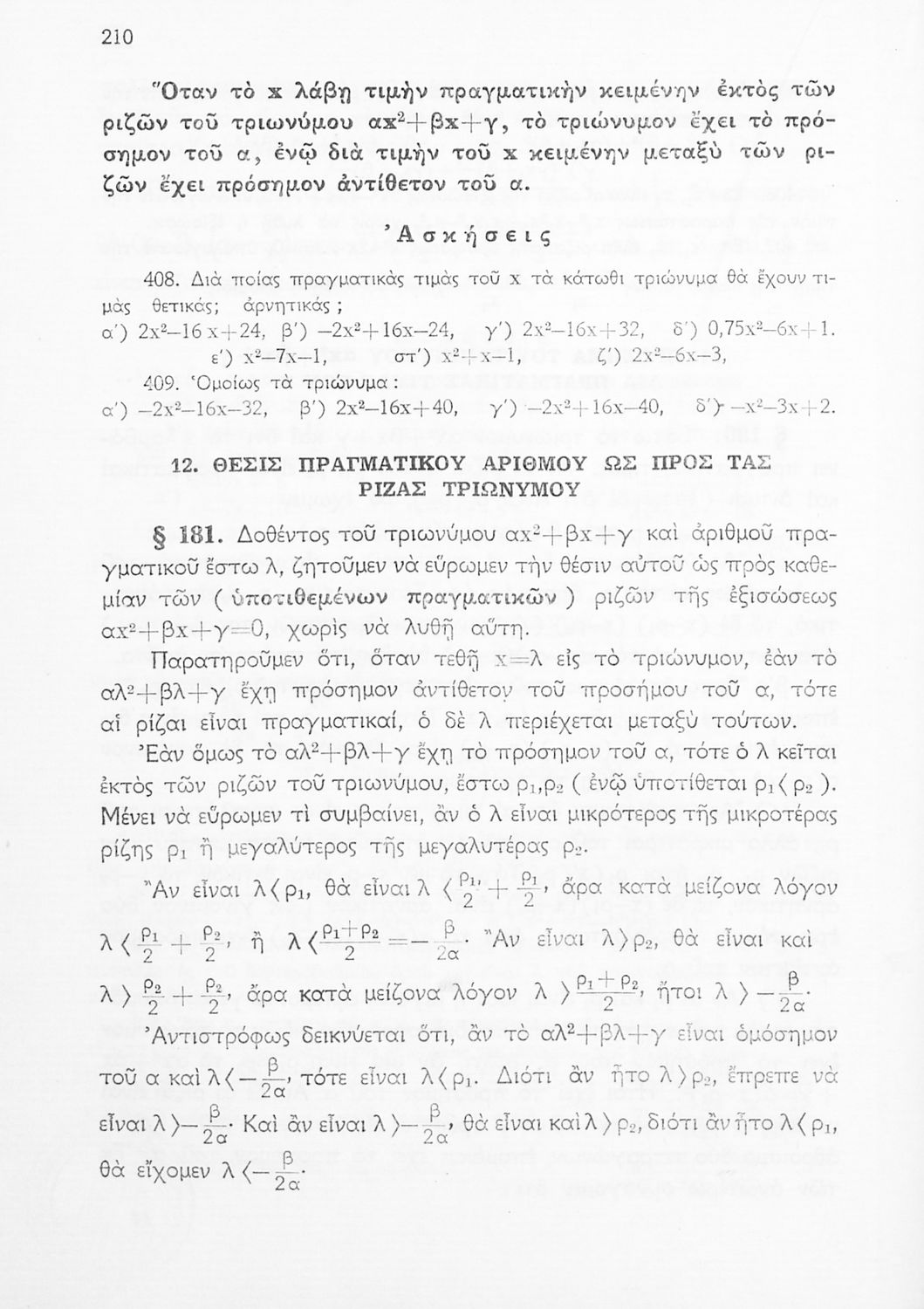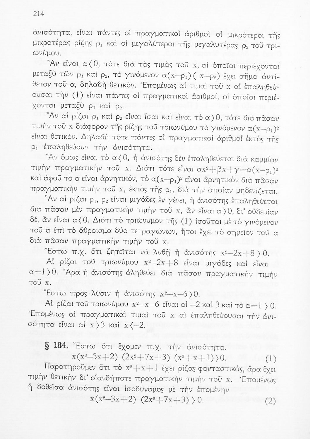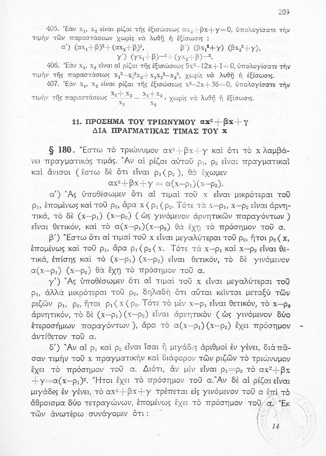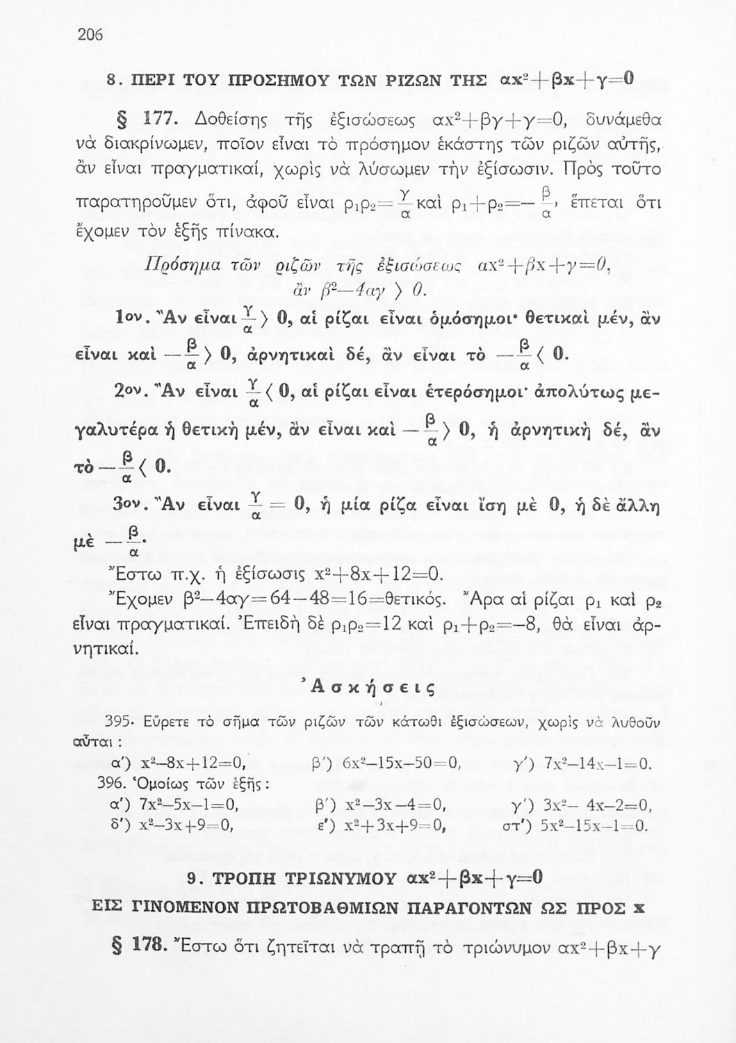 Άλγεβρα δια τας ανωτέρας τάξεις των Γυμνασίων