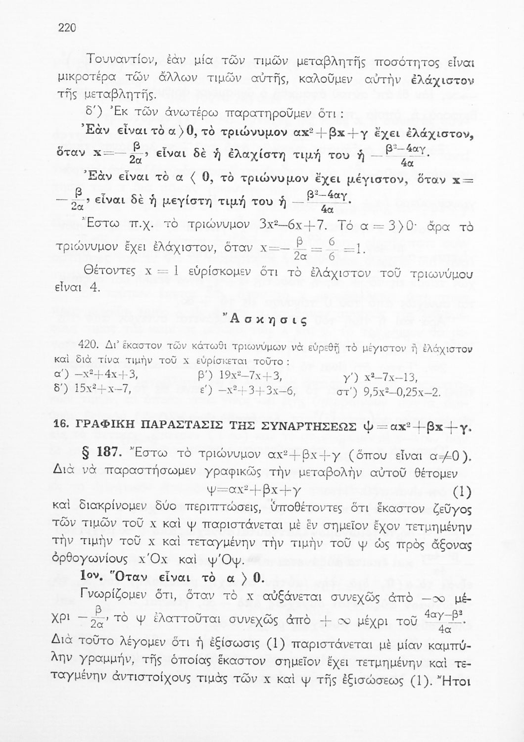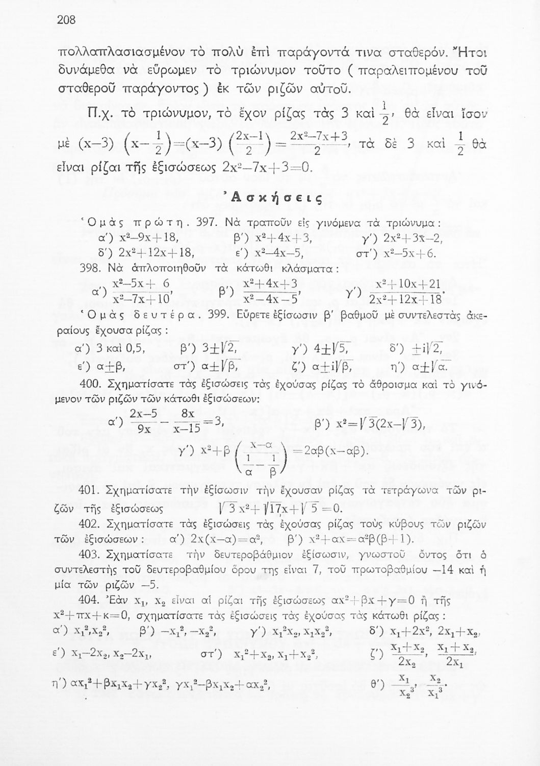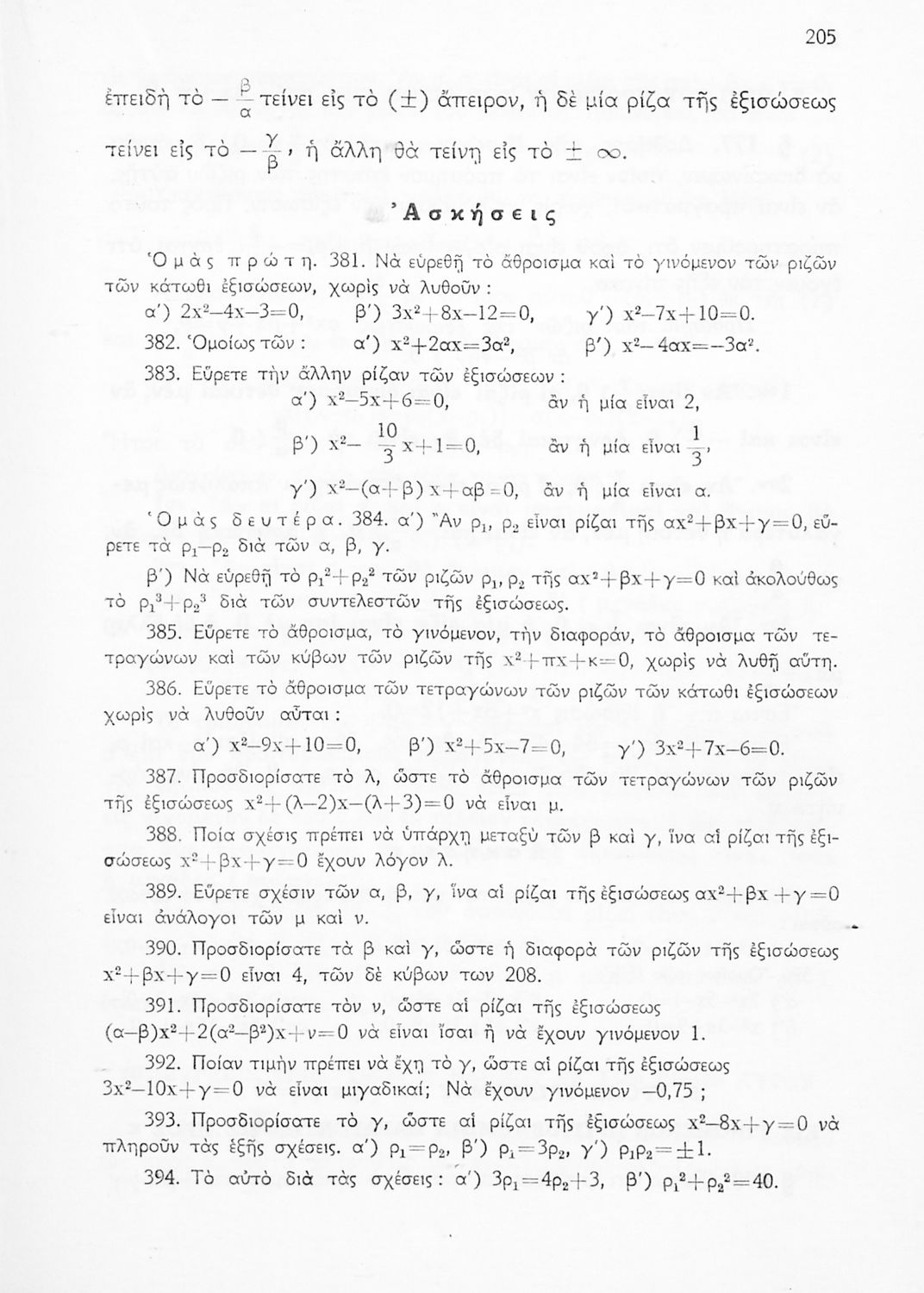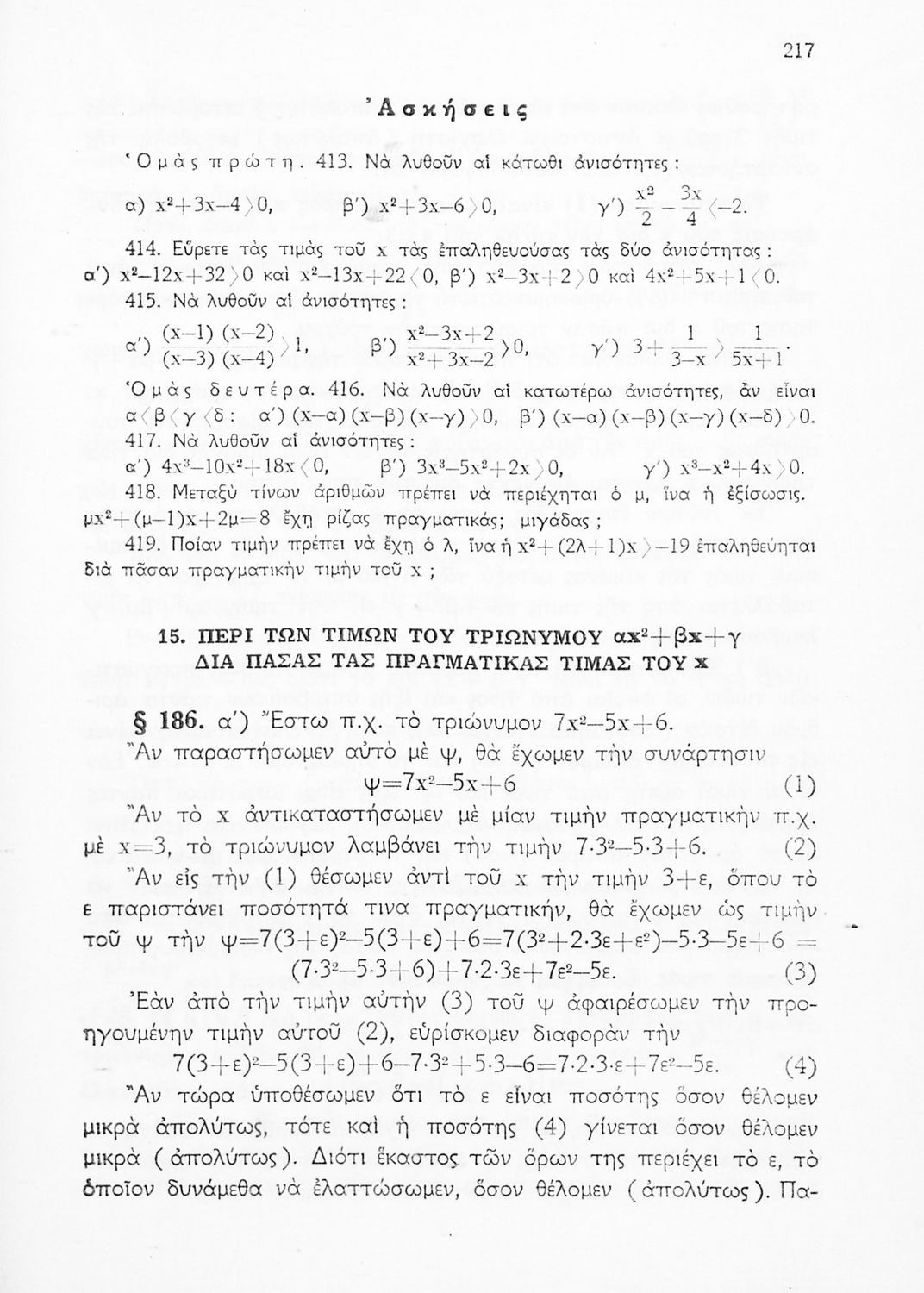 Άλγεβρα δια τας ανωτέρας τάξεις των Γυμνασίων