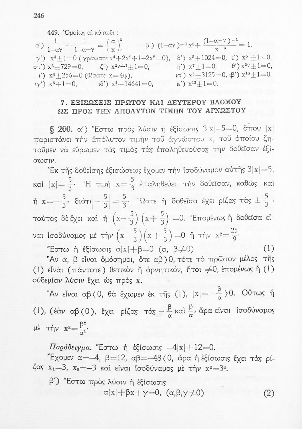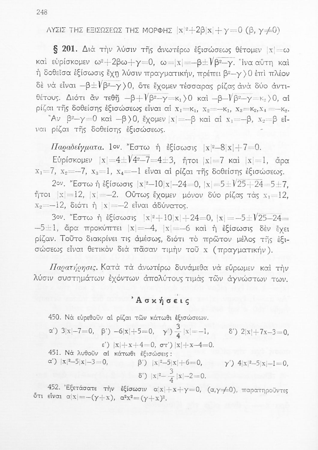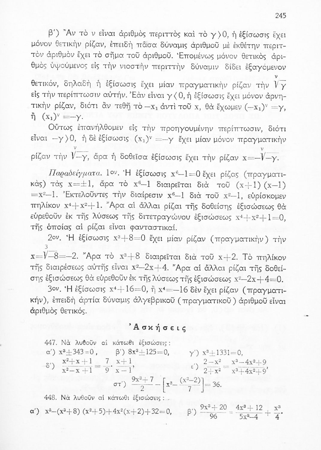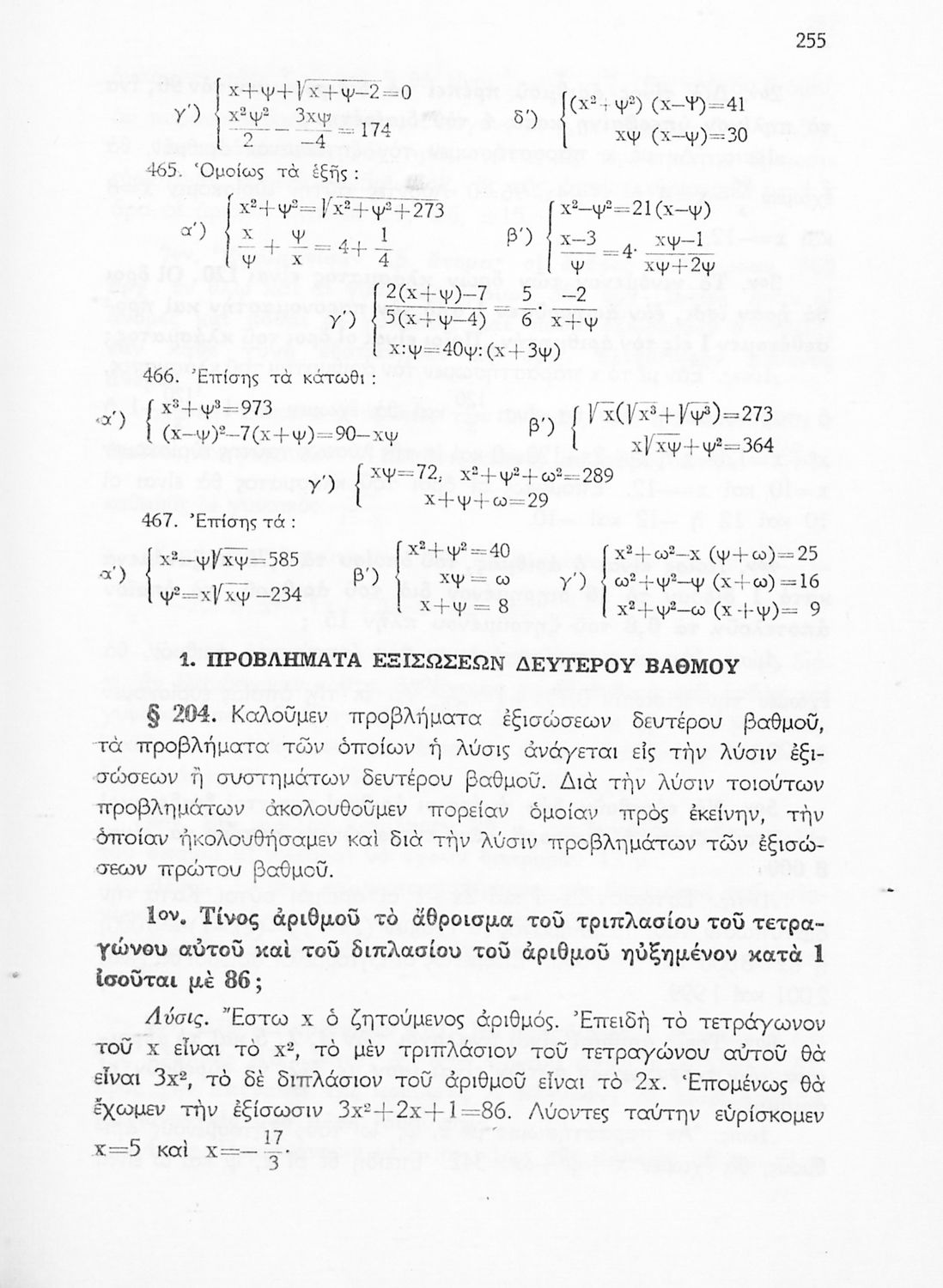 Άλγεβρα δια τας ανωτέρας τάξεις των Γυμνασίων