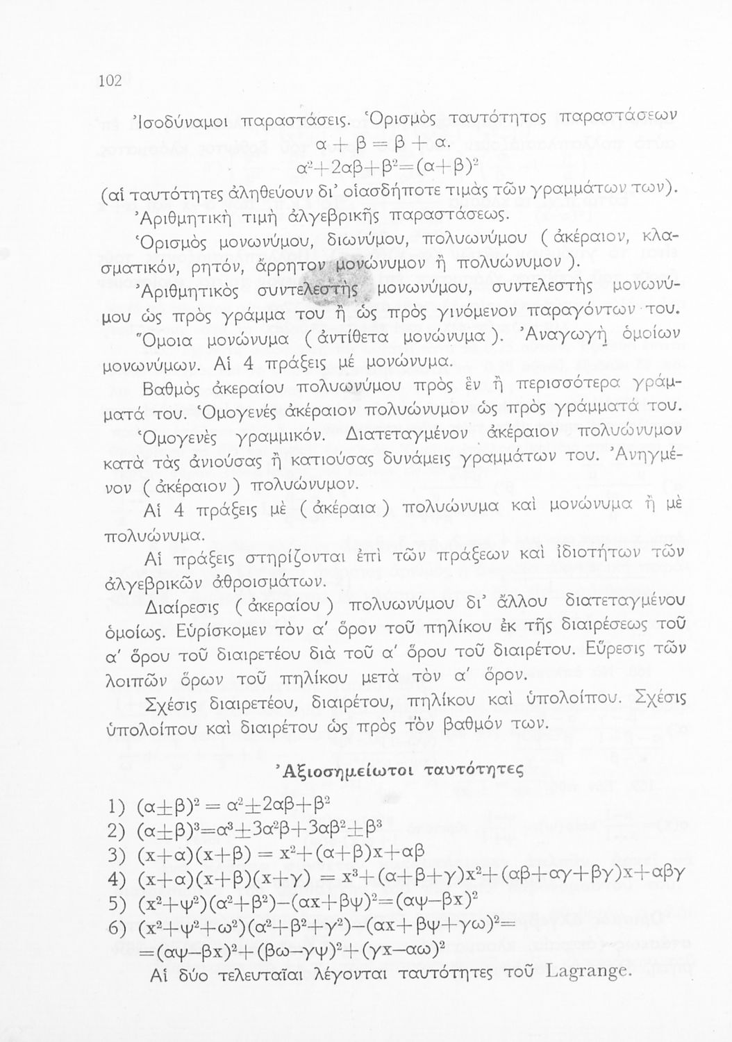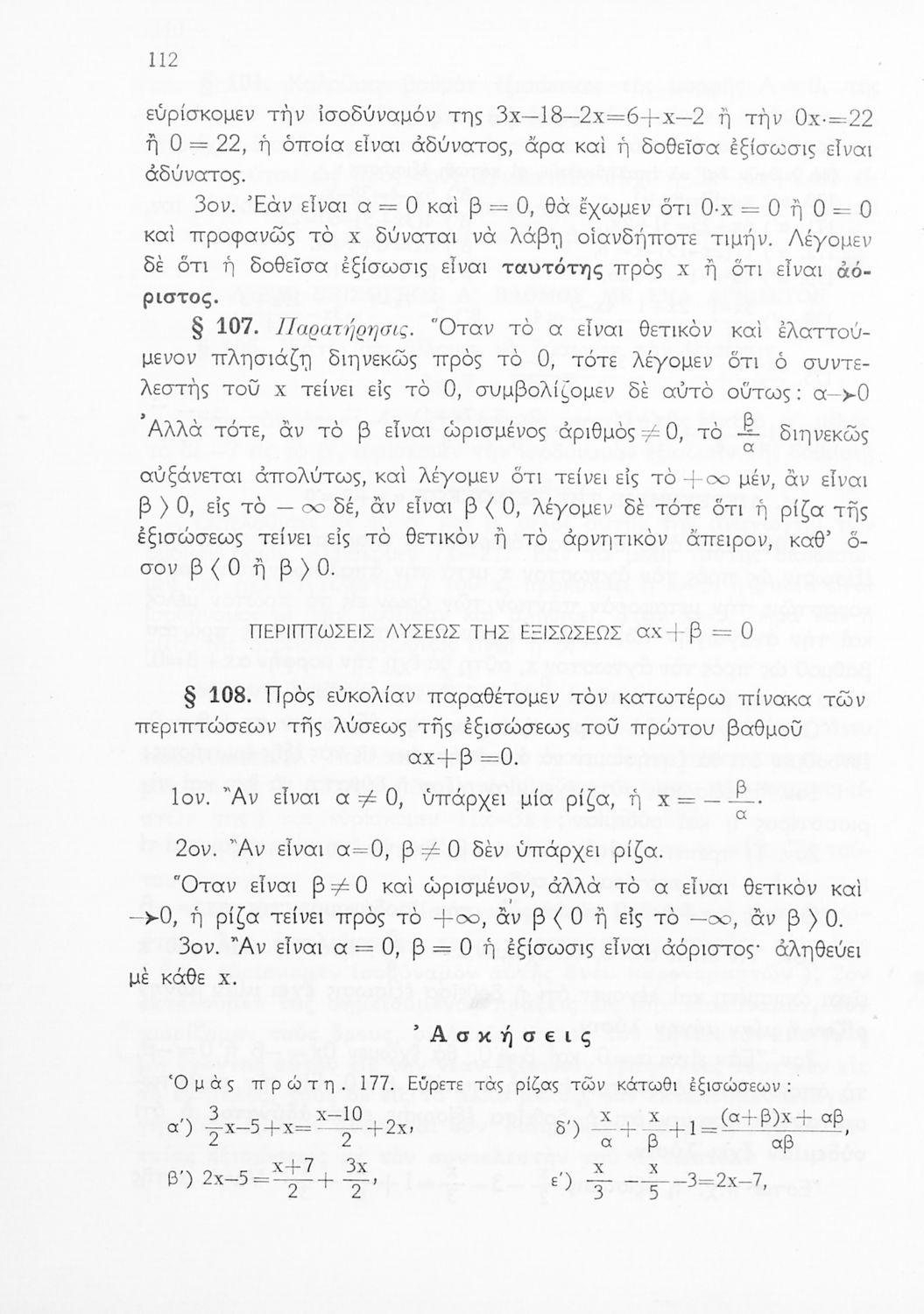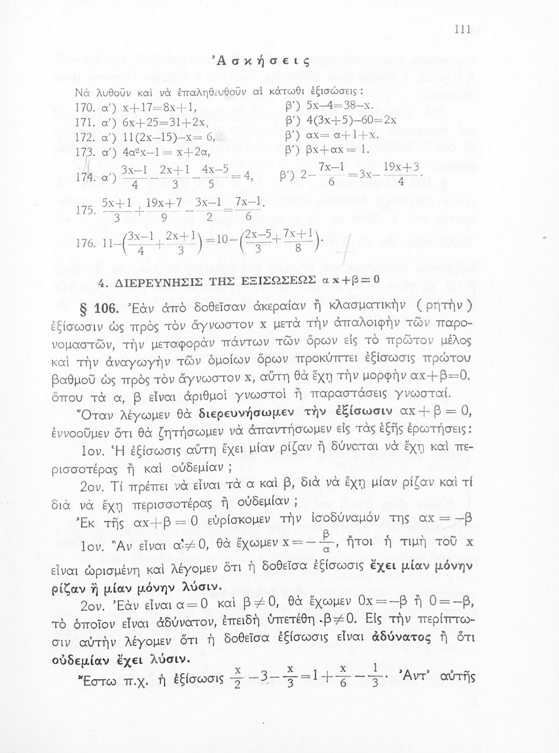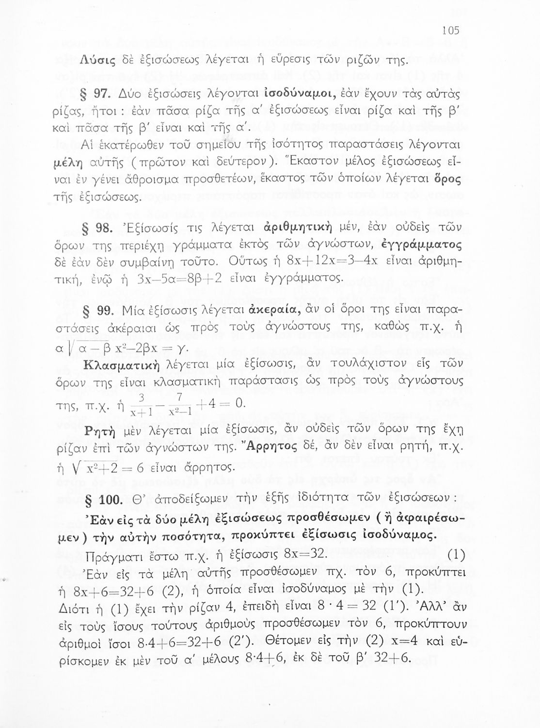 Άλγεβρα δια τας ανωτέρας τάξεις των Γυμνασίων