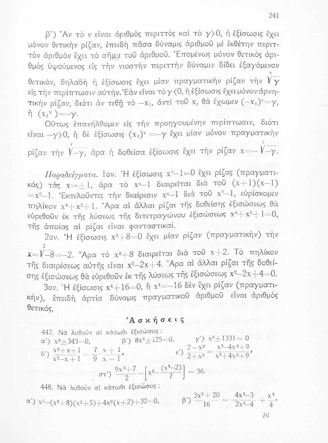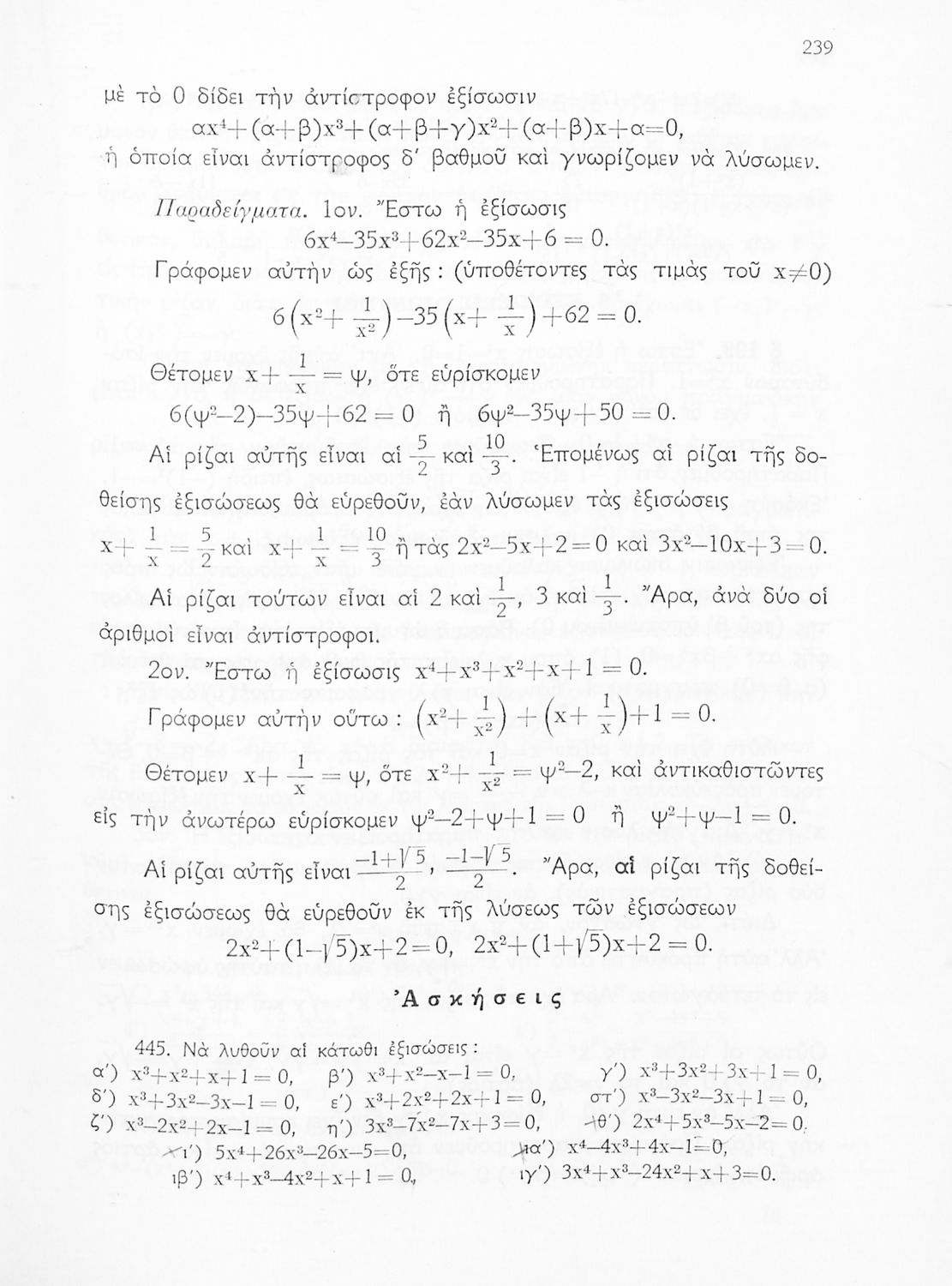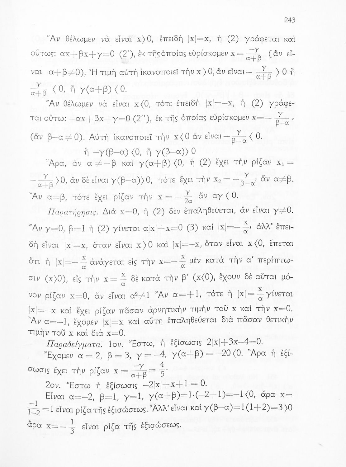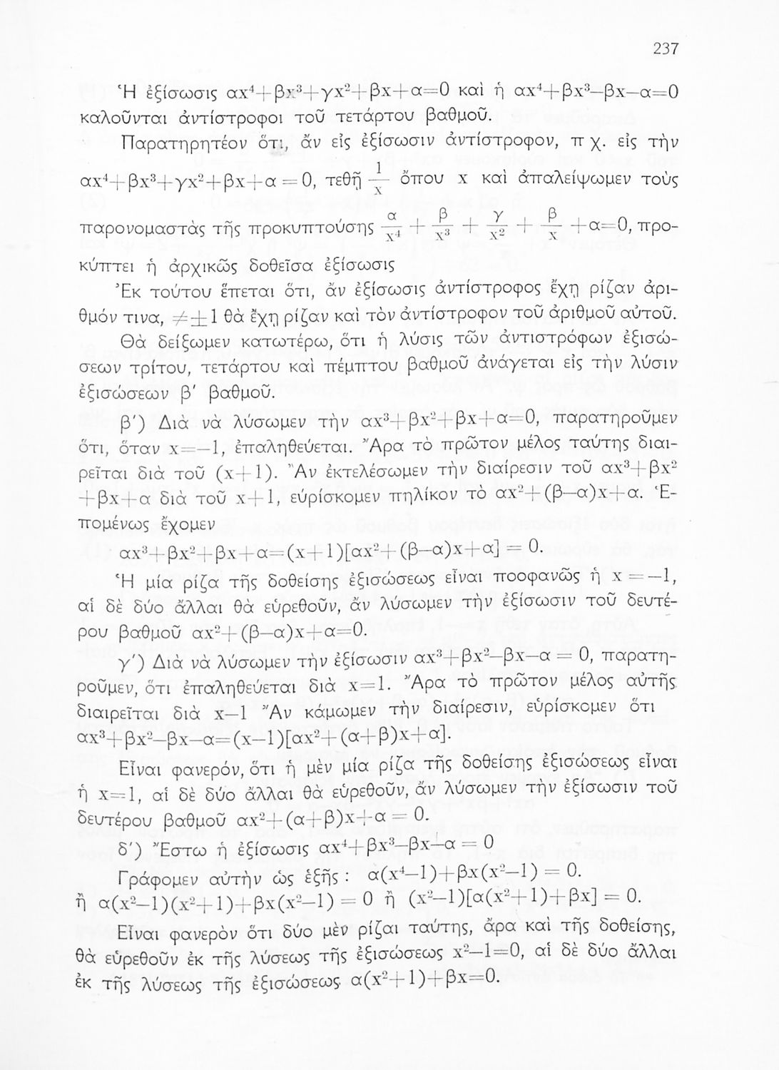Άλγεβρα δια τας ανωτέρας τάξεις των Γυμνασίων