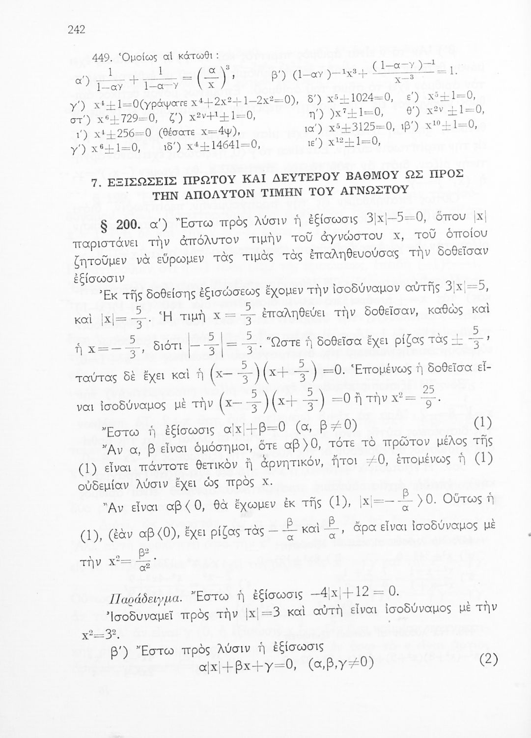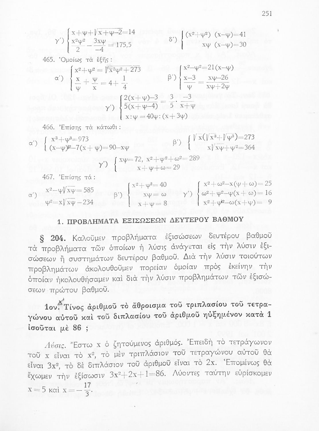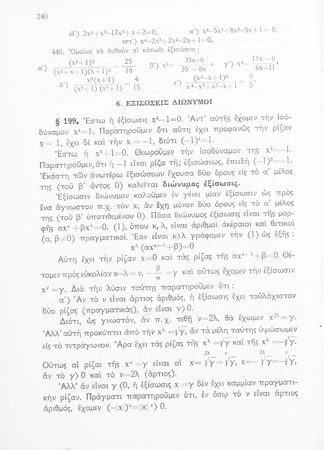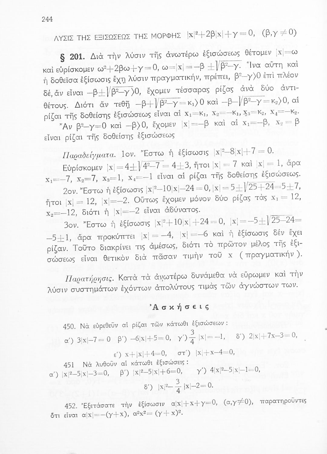 Άλγεβρα δια τας ανωτέρας τάξεις των Γυμνασίων