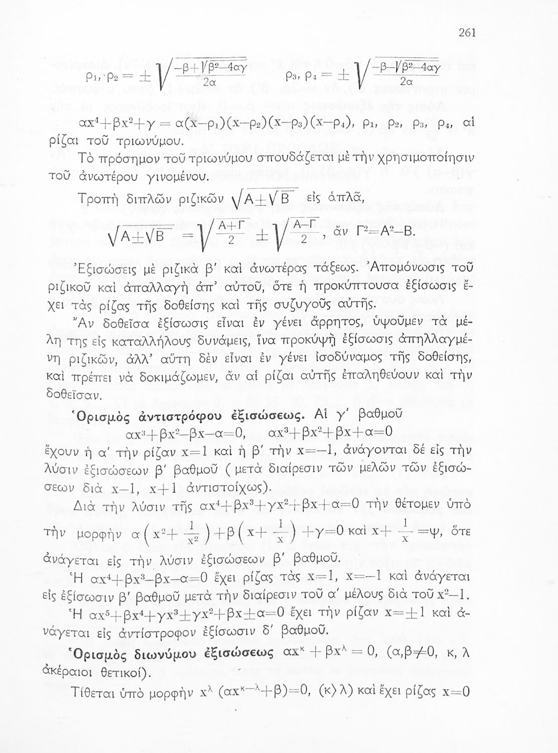 Άλγεβρα δια τας ανωτέρας τάξεις των Γυμνασίων