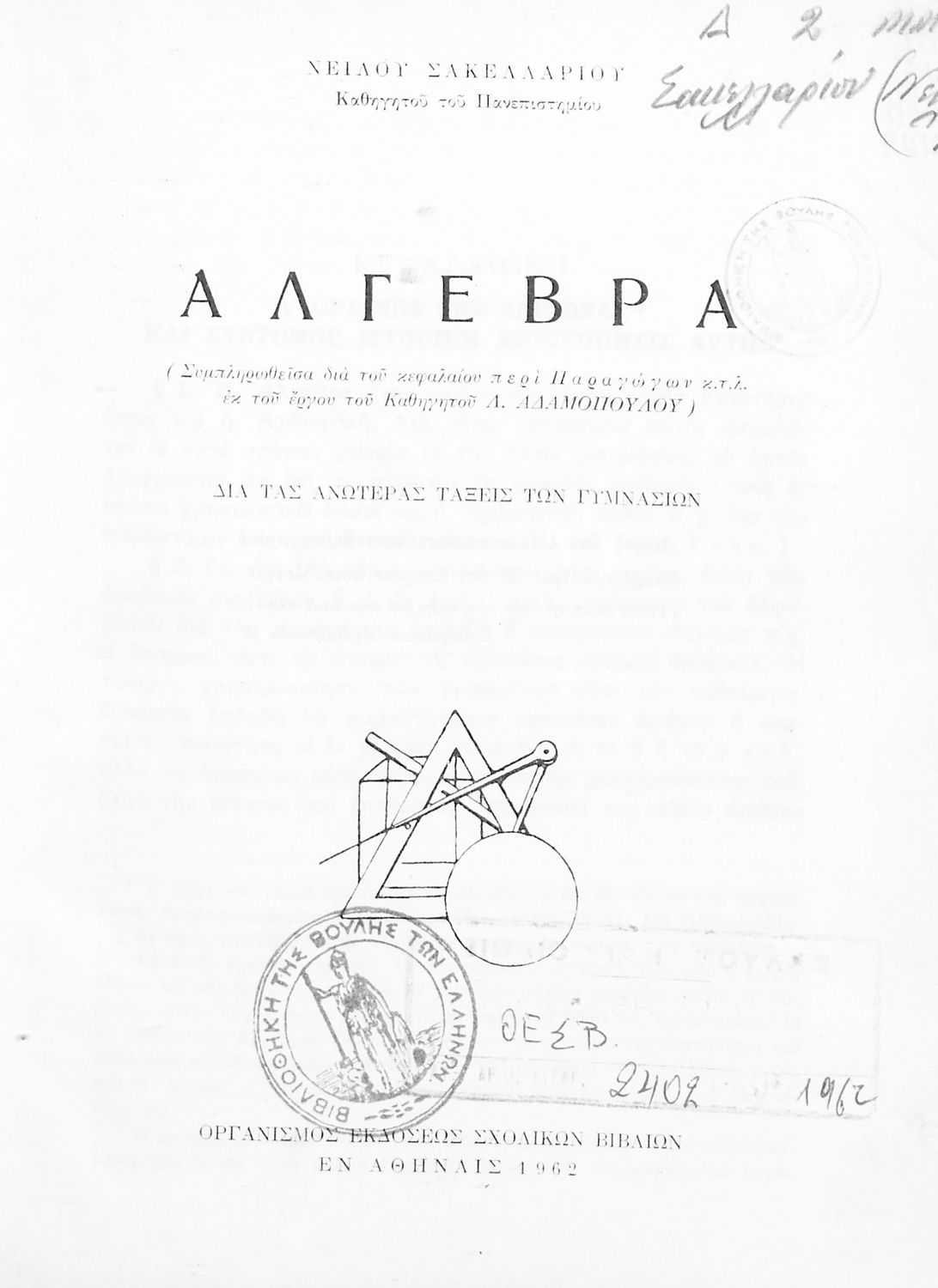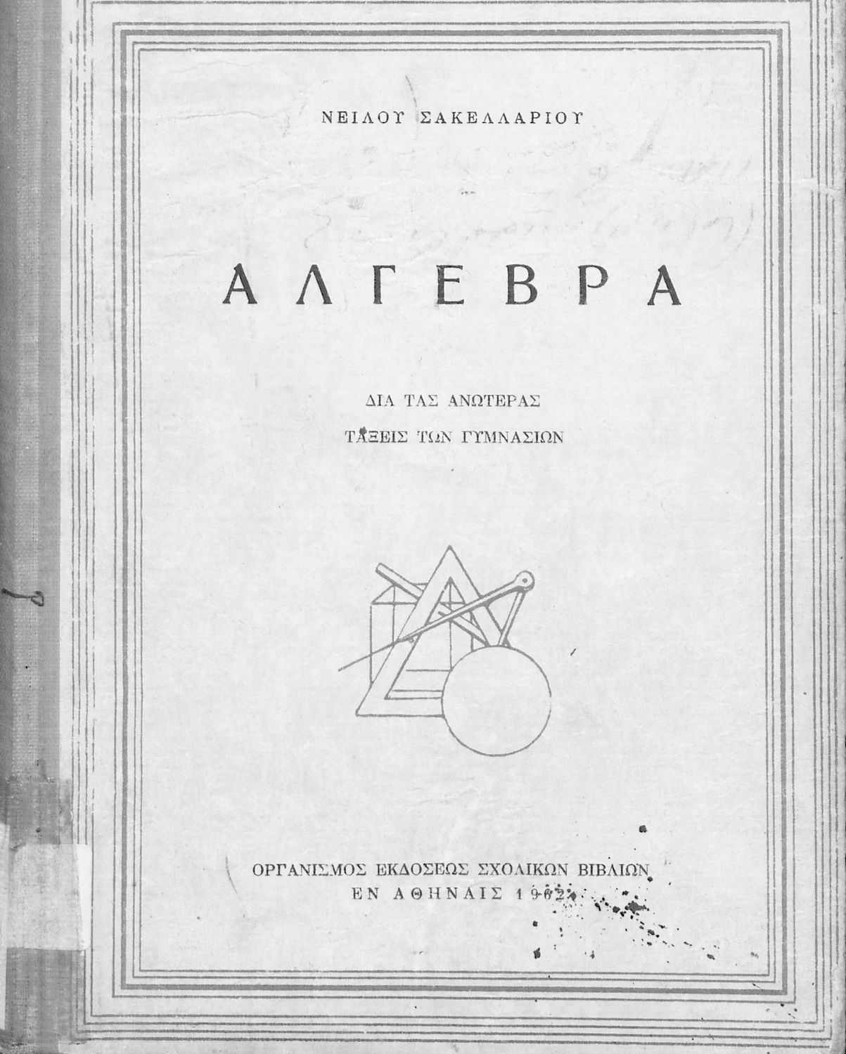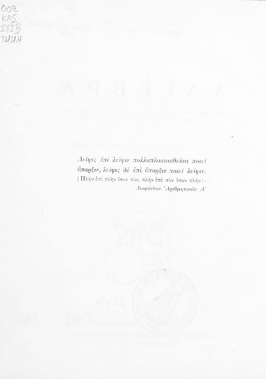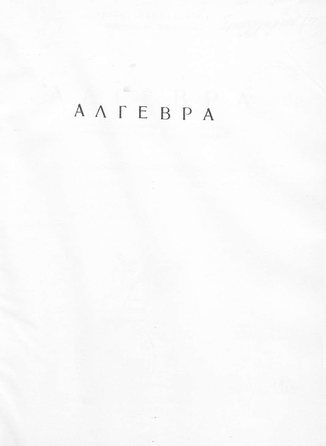 Τίτλος: Άλγεβρα δια τας ανωτέρας τάξεις των Γυμνασίων