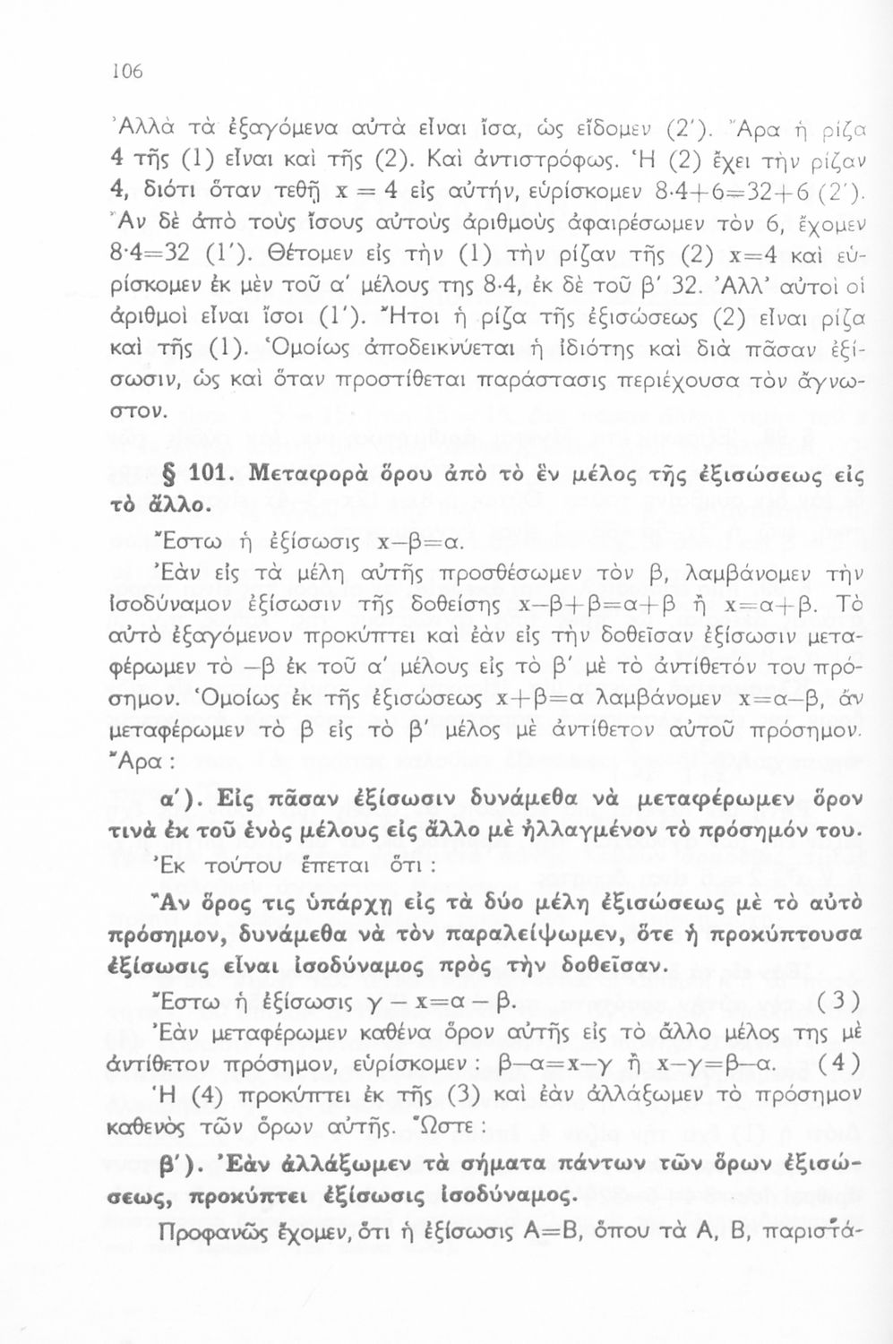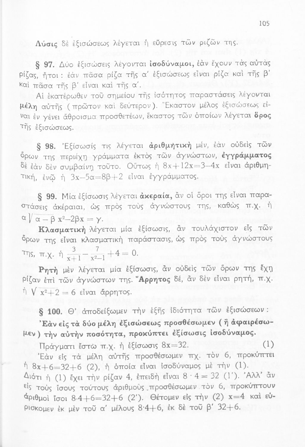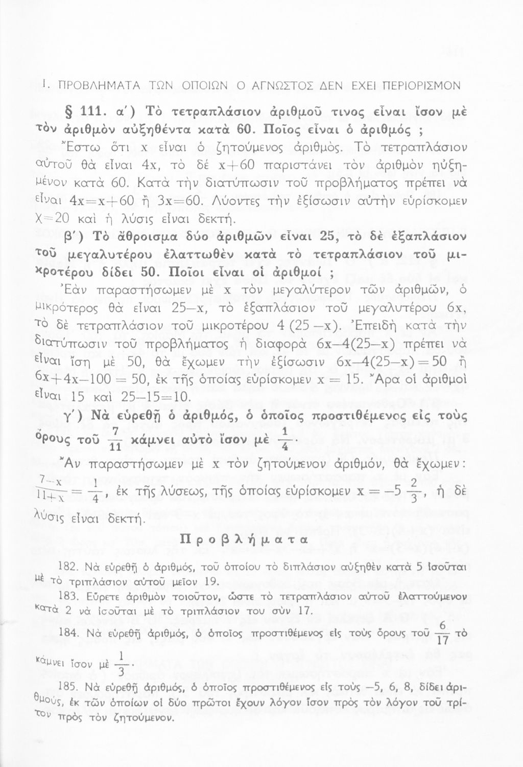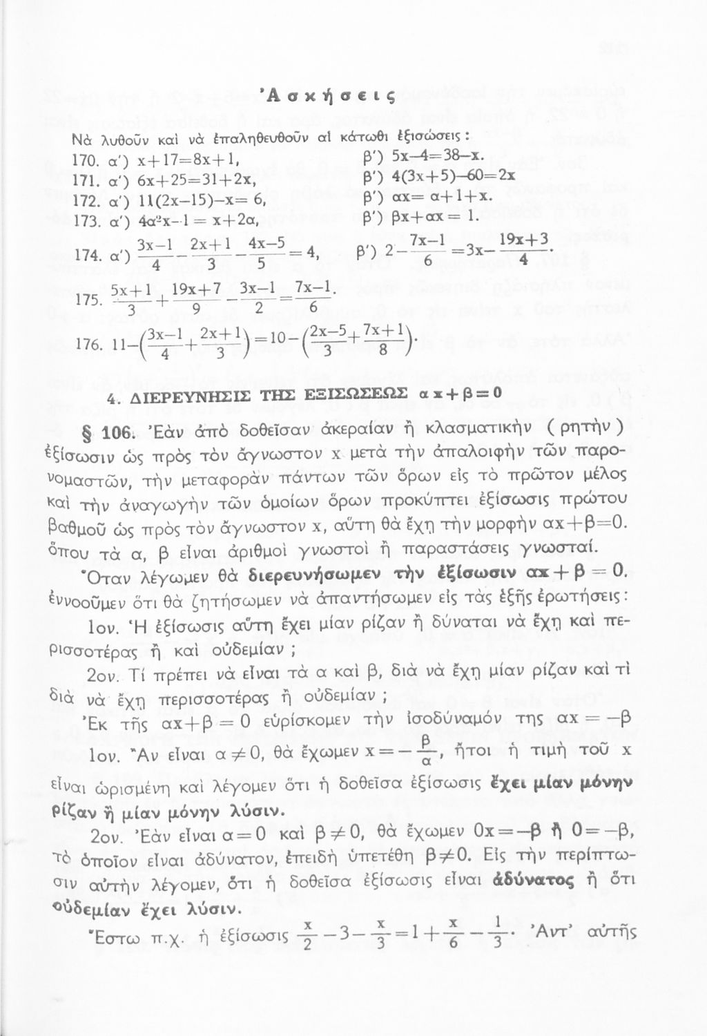 Άλγεβρα Δ΄ Γυμνασίου   [1969, 11η Έκδοση]