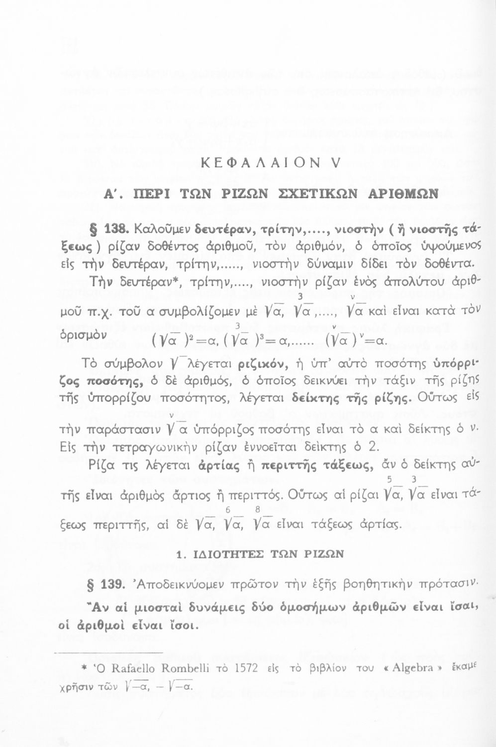 Σχολικό εγχειρίδιο Άλγεβρας για τις Δ΄ και Ε΄ Εξαταξίου Γυμνασίου χωρισμένο σε θεωρία και ασκήσεις που εστιάζει στις αλγεβρικές πράξεις και παραστάσεις, στις εξισώσεις και στις ρίζες.