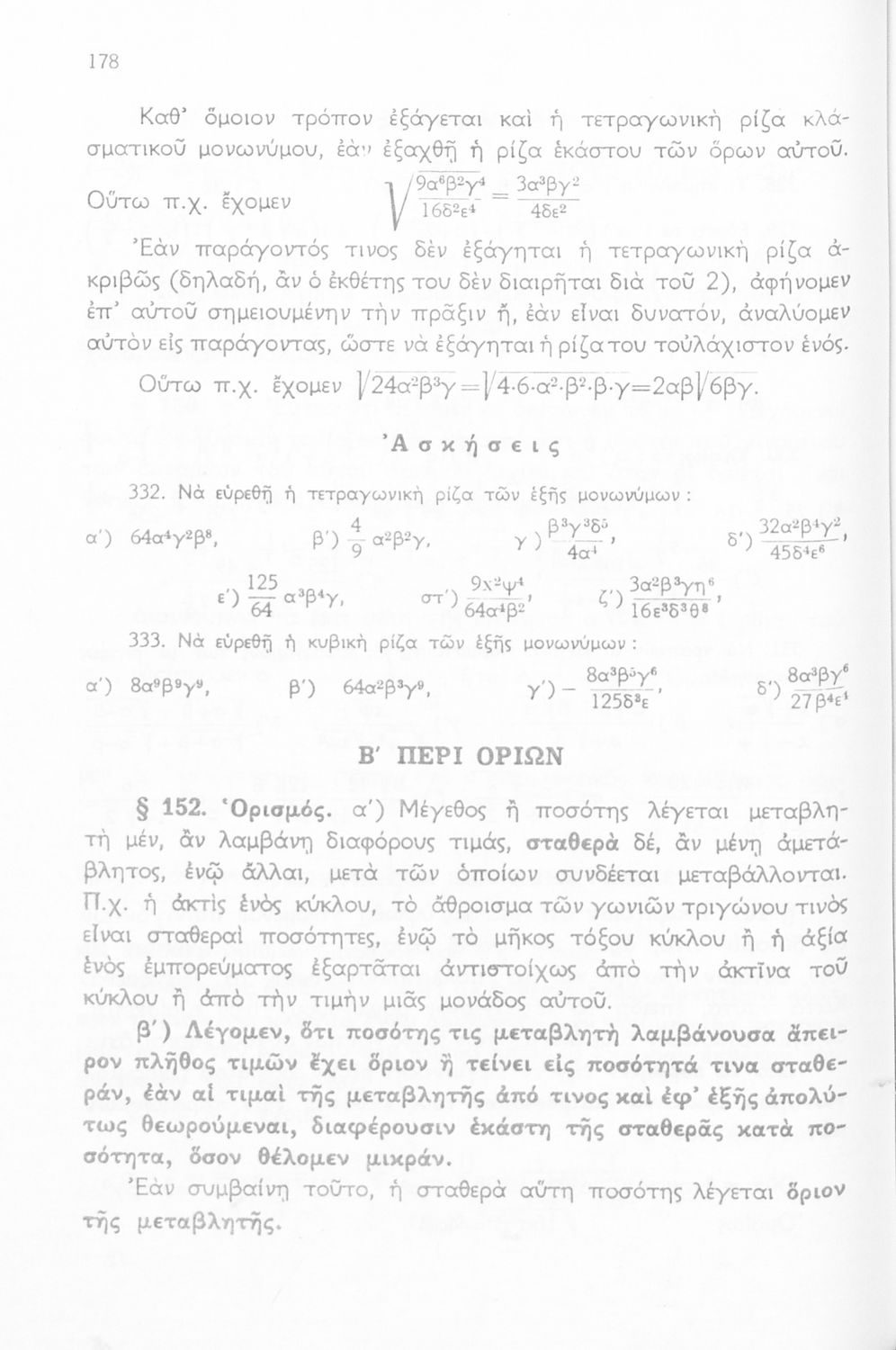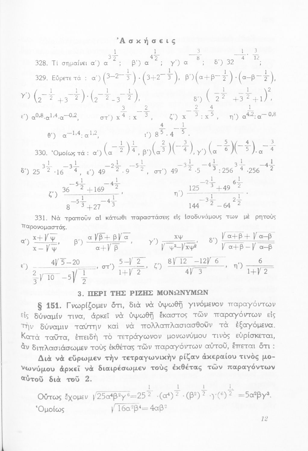 Άλγεβρα Δ΄ Γυμνασίου   [1970, 12η Έκδοση]