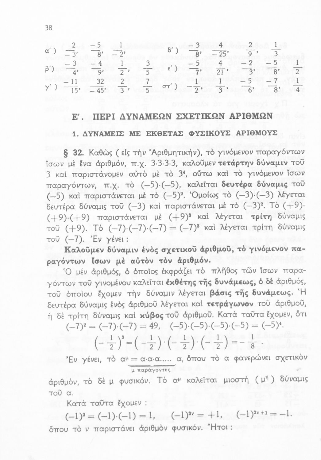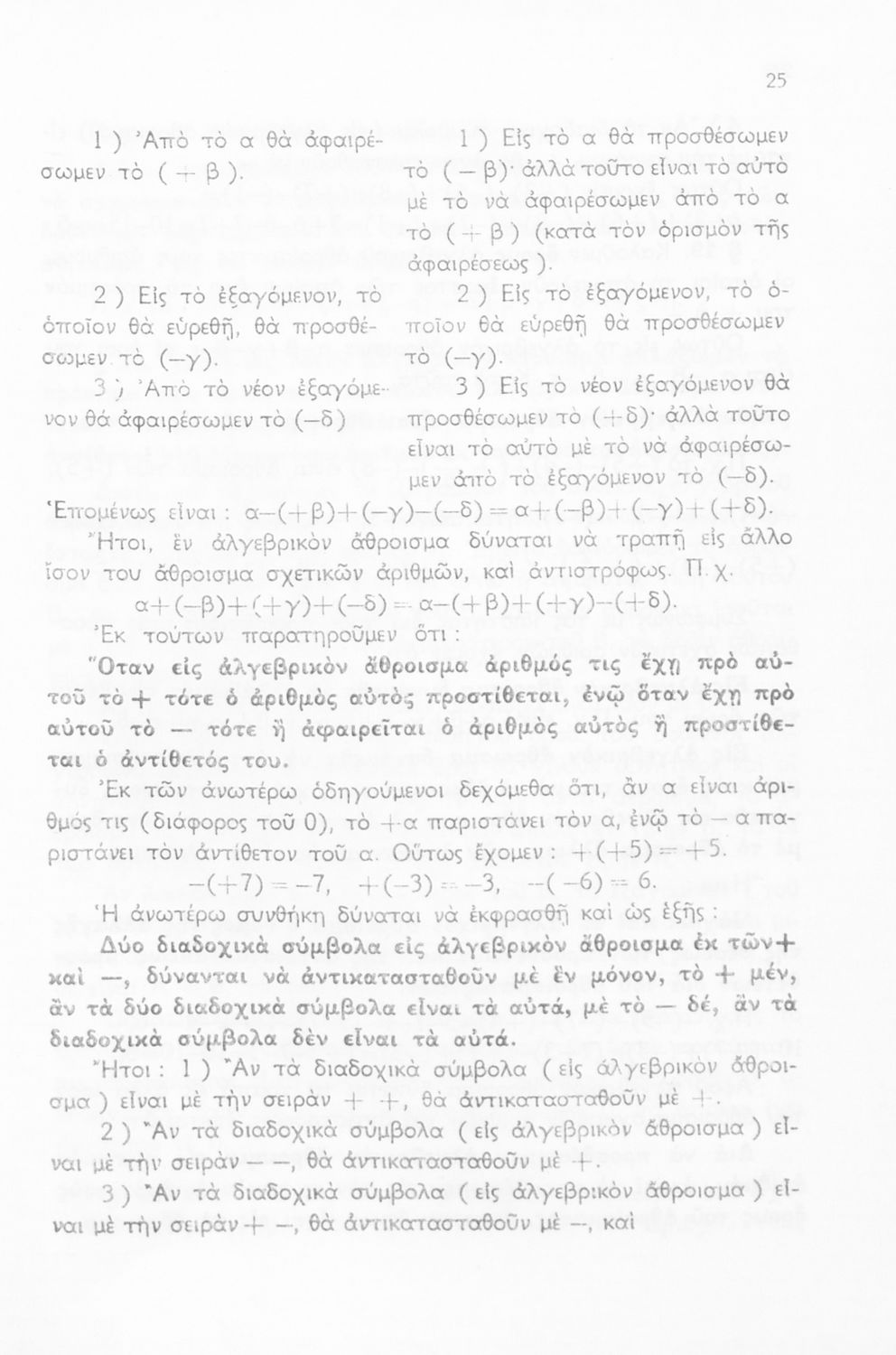 Σχολικό εγχειρίδιο Άλγεβρας Δ΄ Γυμνασίου που εστιάζει στις ιδιότητες των αριθμών, στις εξισώσεις, στους λογάριθμους και στις παραγώγους. Ο συγγραφέας ήταν καθηγητής στο Πανεπιστήμιο. Φέρει το σύμβολο της ...