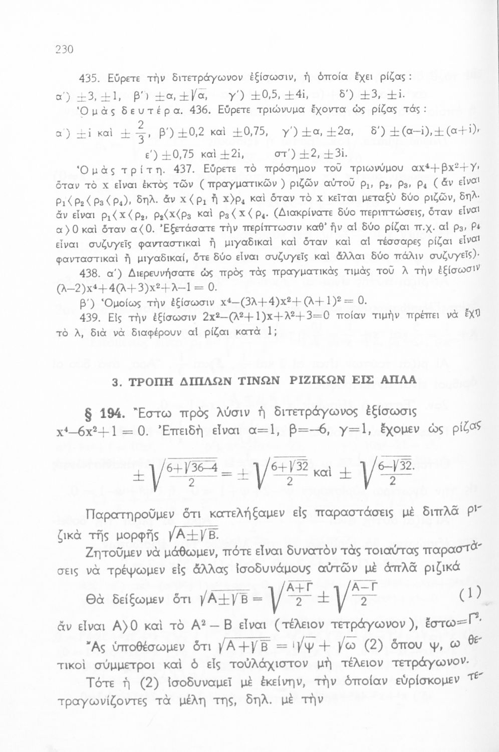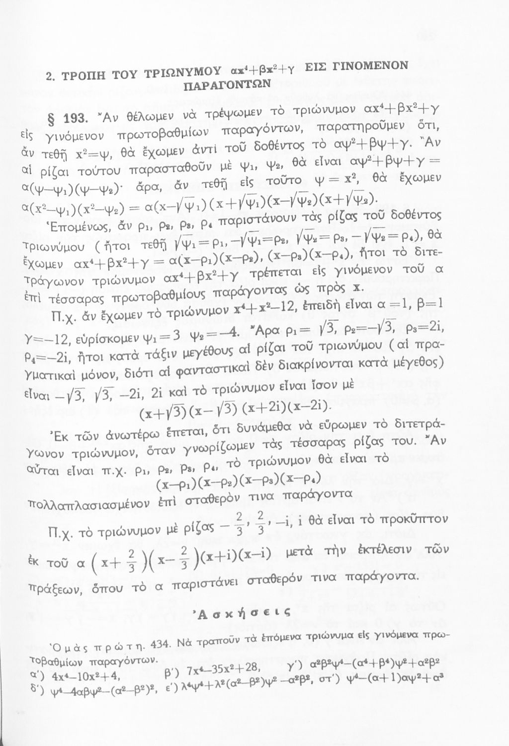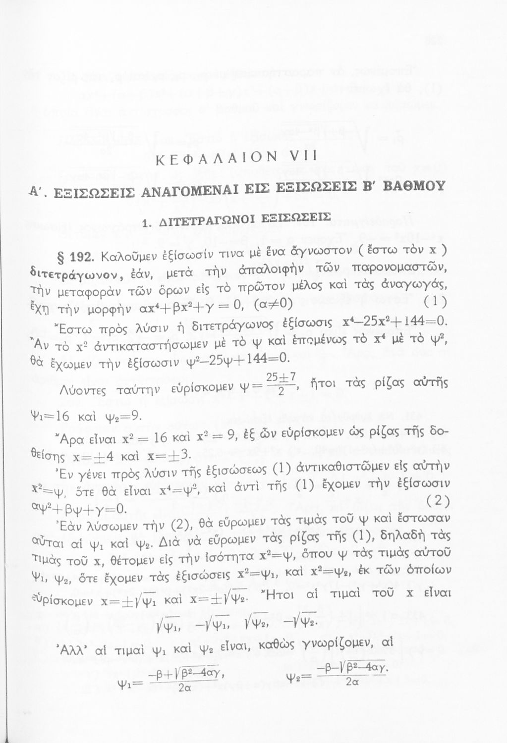Άλγεβρα Δ΄ Γυμνασίου   [1970, 12η Έκδοση]