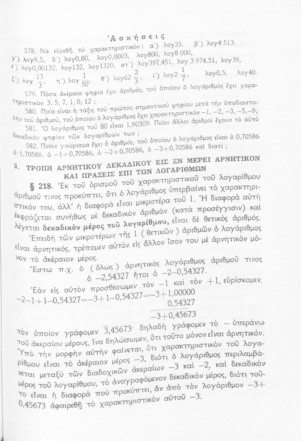 Σχολικό εγχειρίδιο Άλγεβρας Δ΄ Γυμνασίου που εστιάζει στις ιδιότητες των αριθμών, στις εξισώσεις, στους λογάριθμους και στις παραγώγους. Ο συγγραφέας ήταν καθηγητής στο Πανεπιστήμιο. Φέρει το σύμβολο της ...